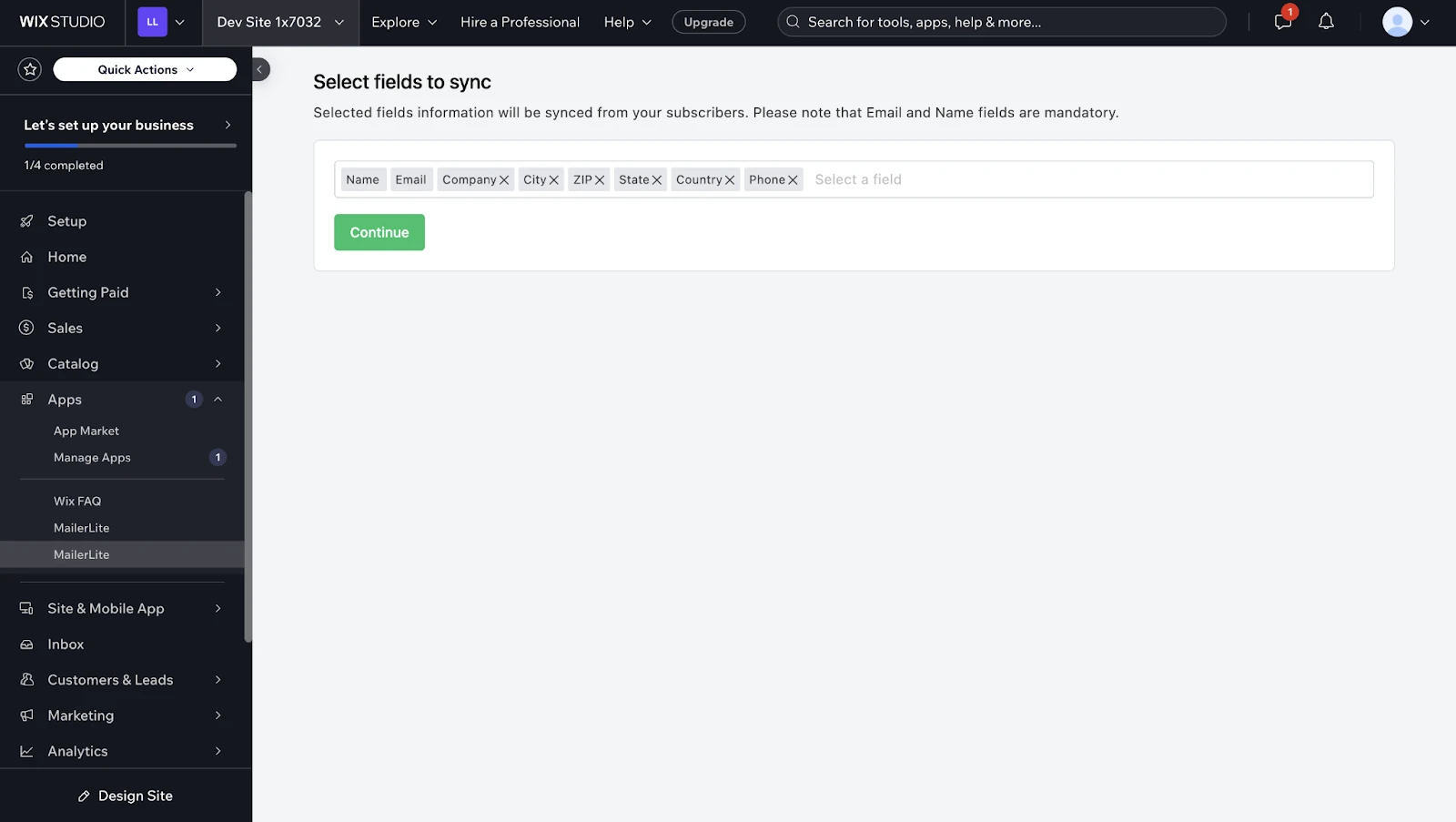 5. If you have more than one Wix site, choose which one you would like to connect to MailerLite.