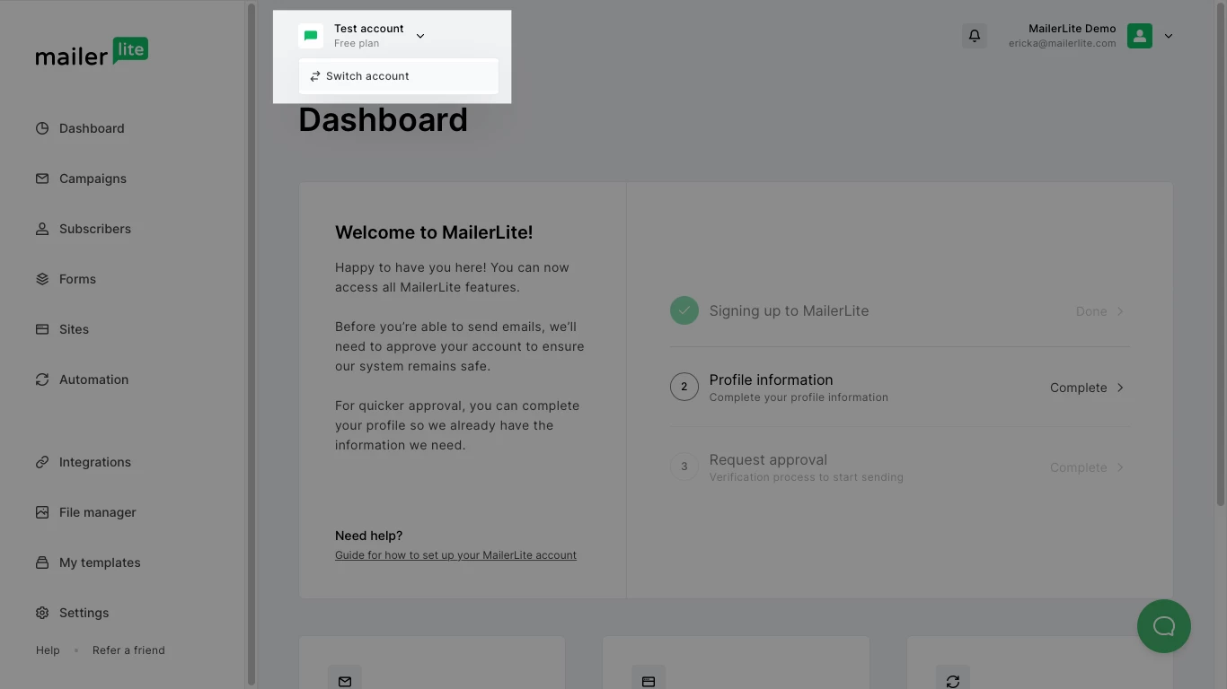 If you have multiple businesses, run an agency, or are a certified MailerLite expert, you may find yourself in need of managing multiple MailerLite accounts.
