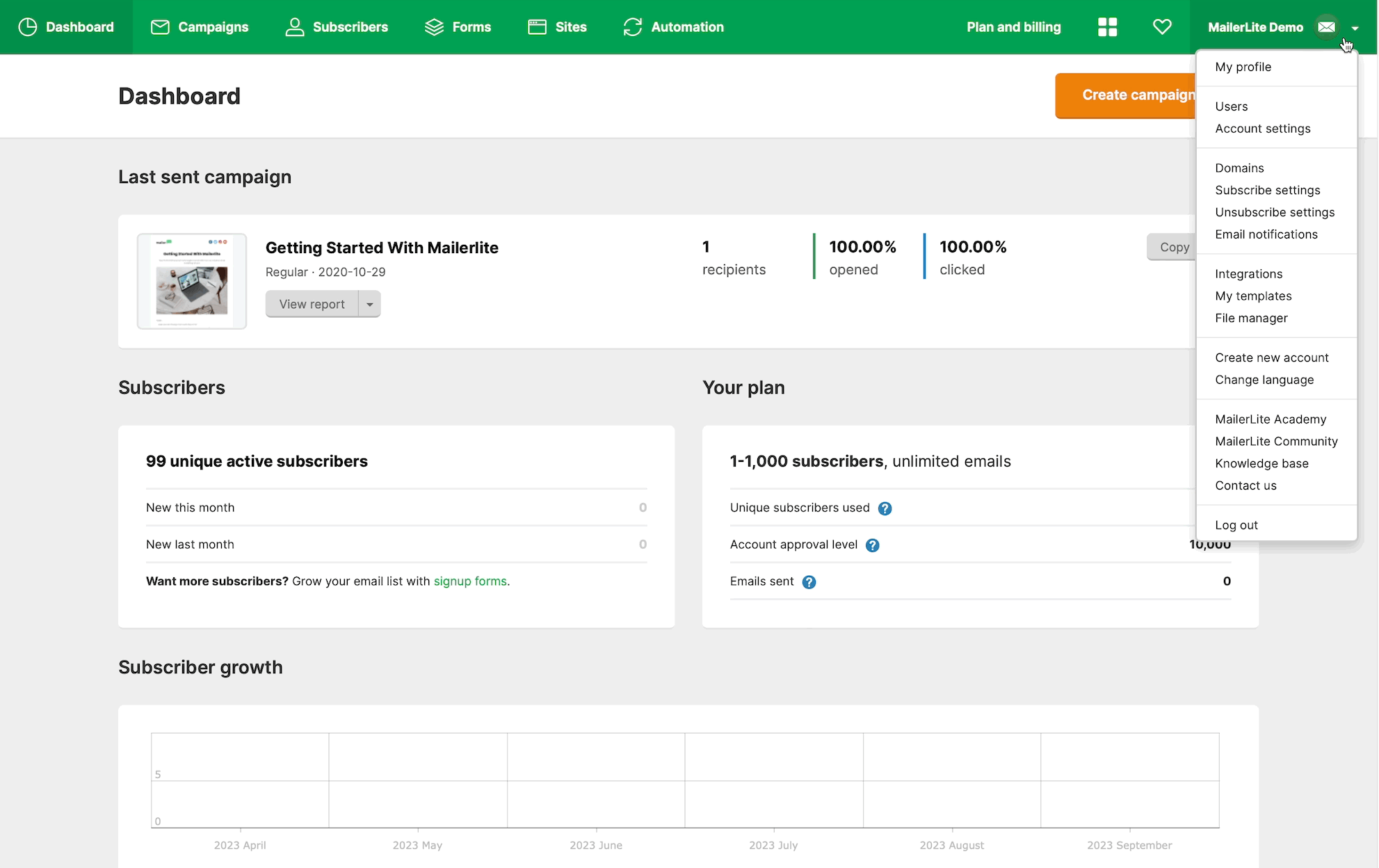 Keep in mind, billing in the new MailerLite is based on Active subscribers, rather than unique subscribers as in MailerLite Classic. For more details on billing, see Everything about plan and billing.