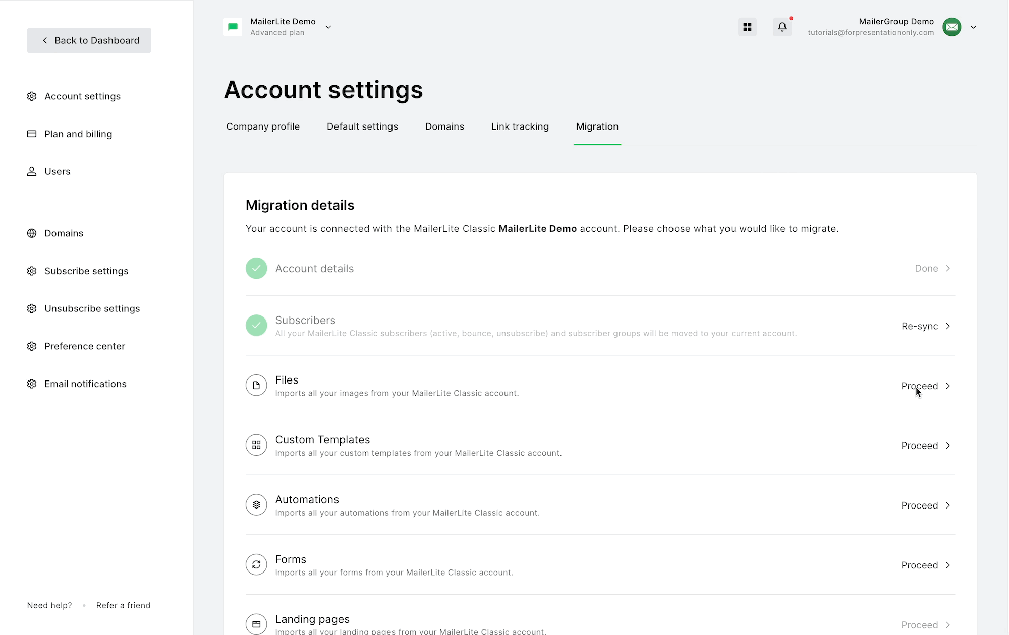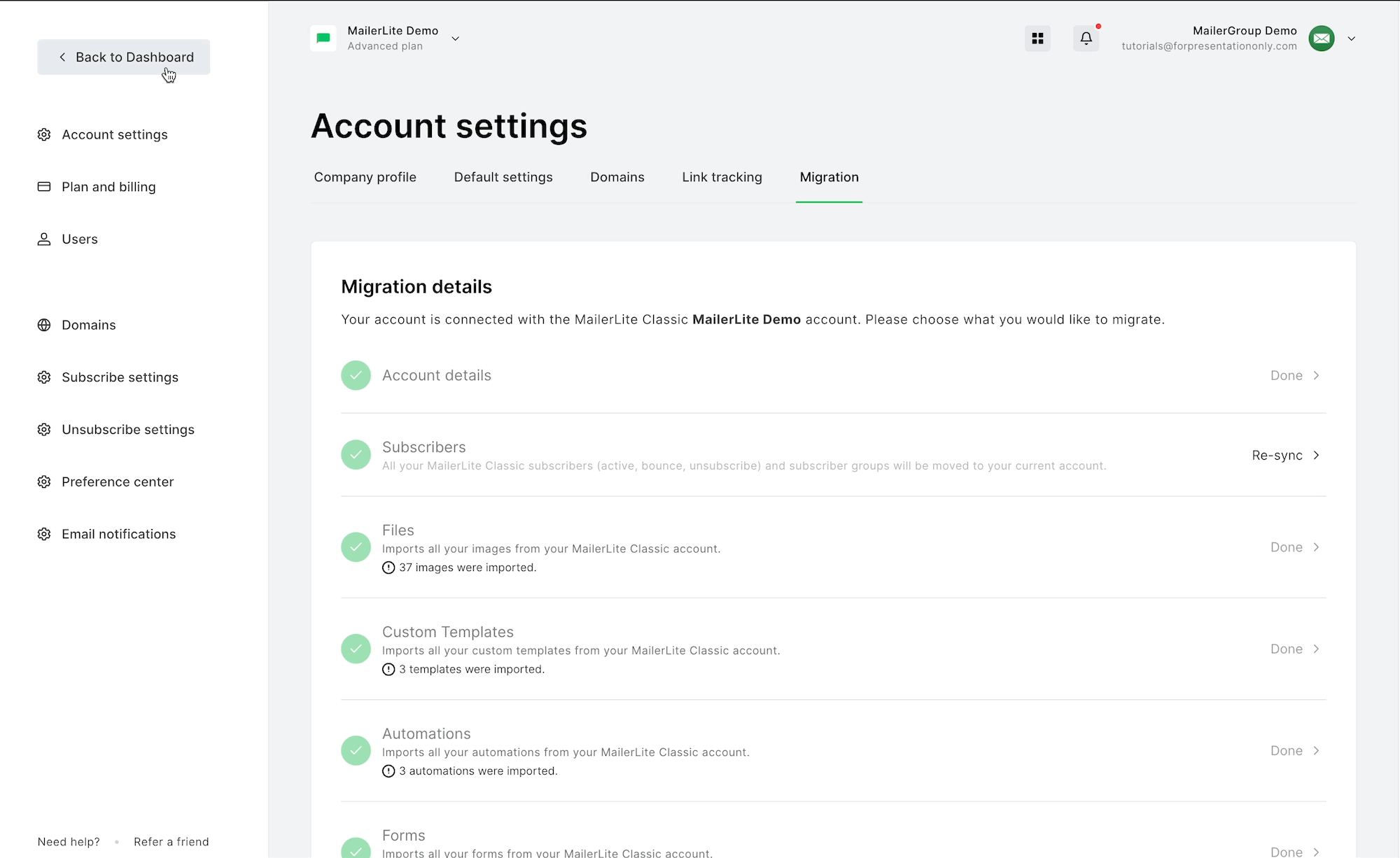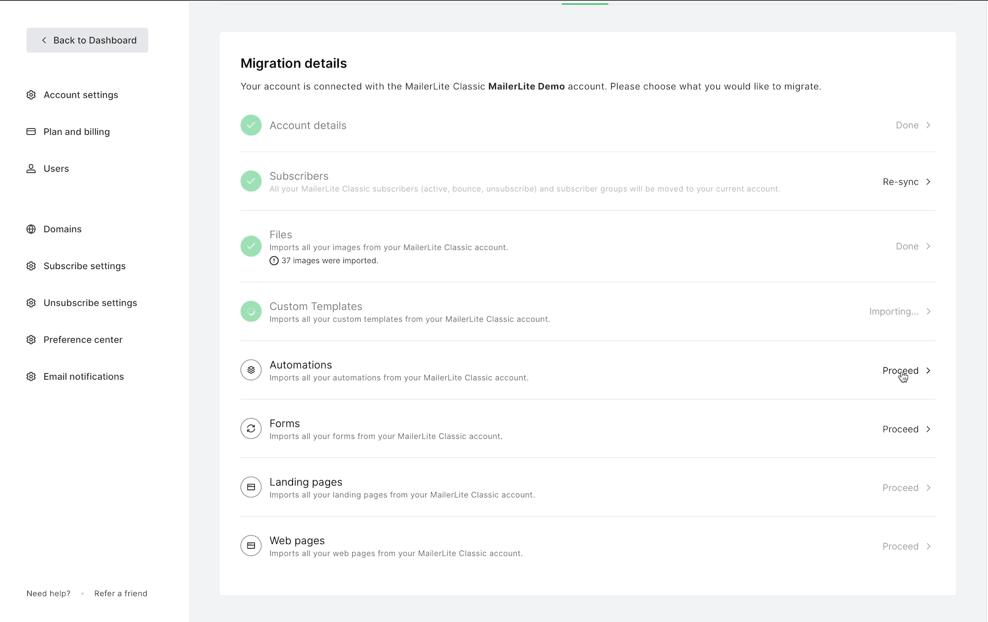 If you're still collecting and managing subscribers in MailerLite Classic, you can always come back to the Migration tab in your Account Settings to re-sync subscribers whenever you need to.