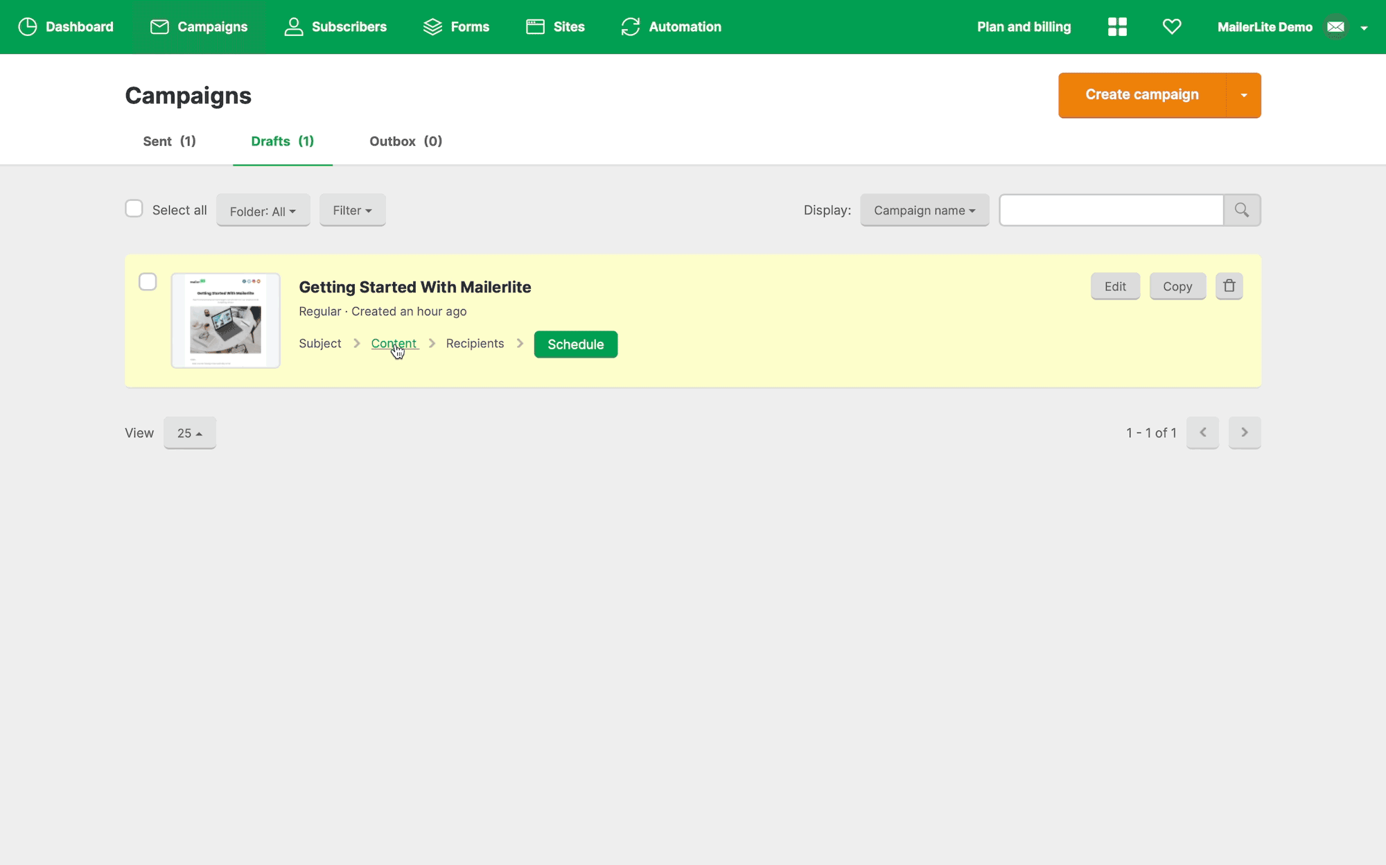 Now, you can find the duplicate of the sent campaign under the Drafts folder.
