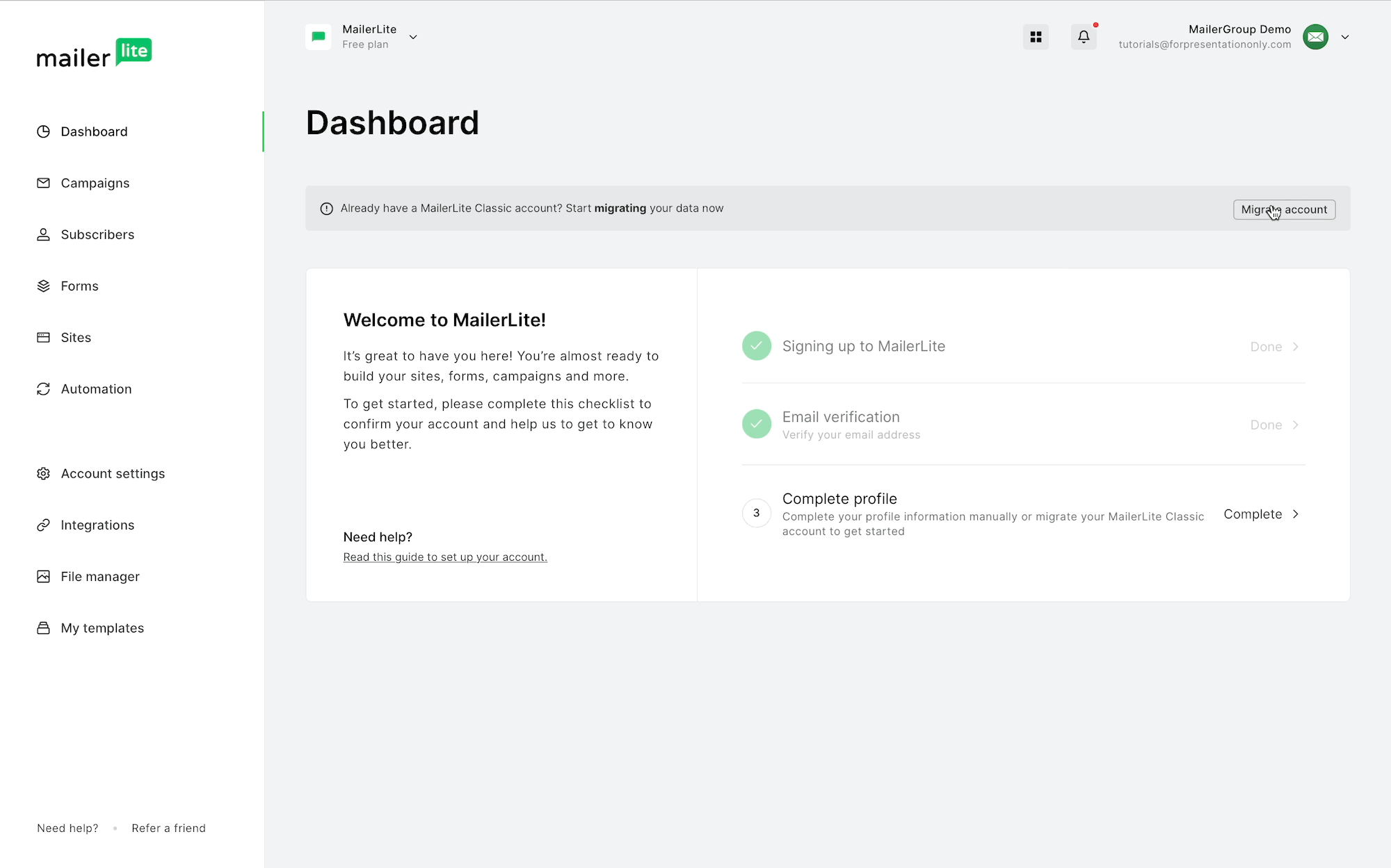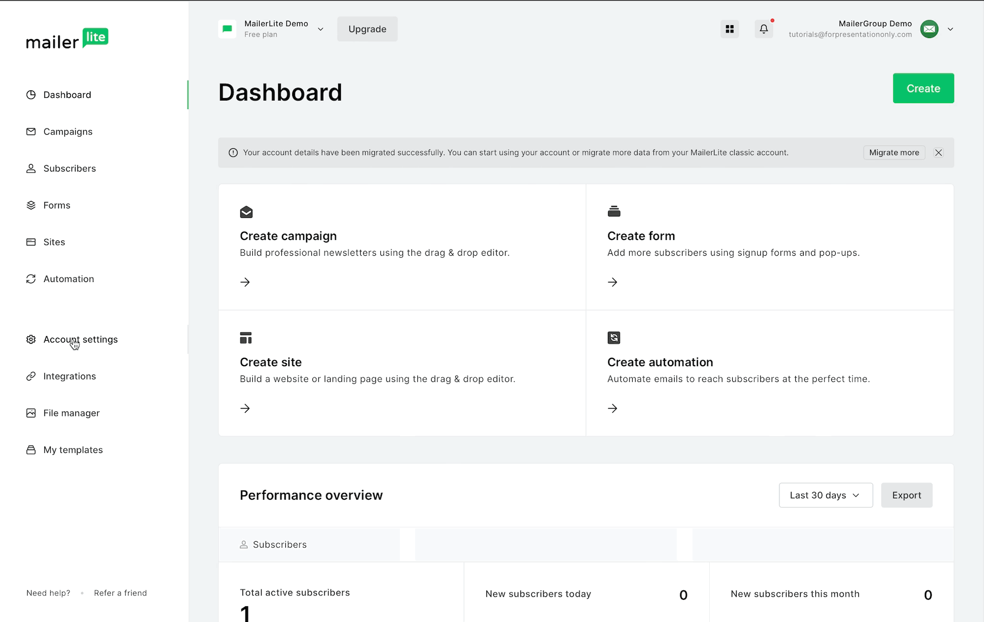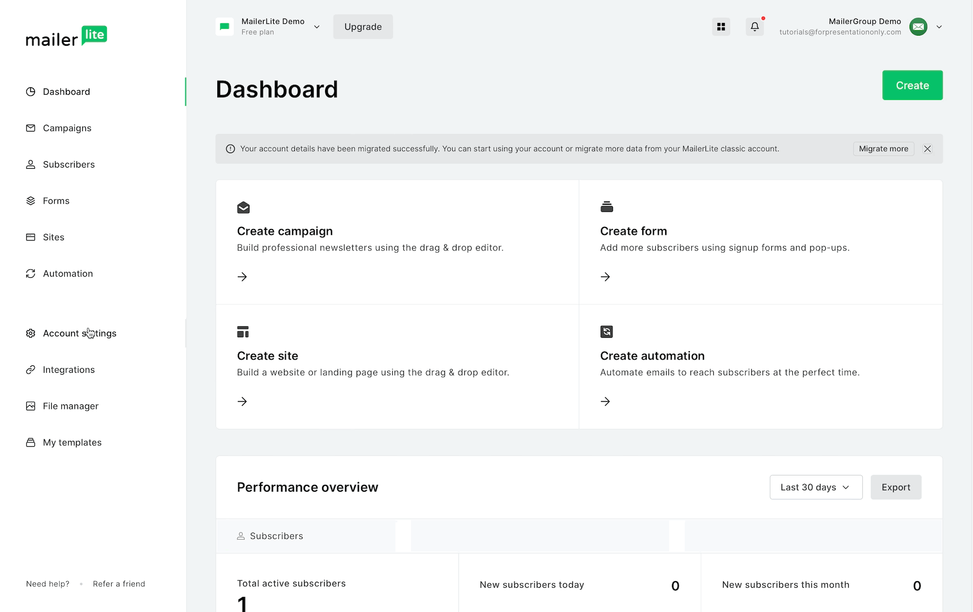 On the free plan, you can migrate up to 500 subscribers. This gives you a chance to test out the migration tools and explore your new account before deciding to upgrade for full access.
