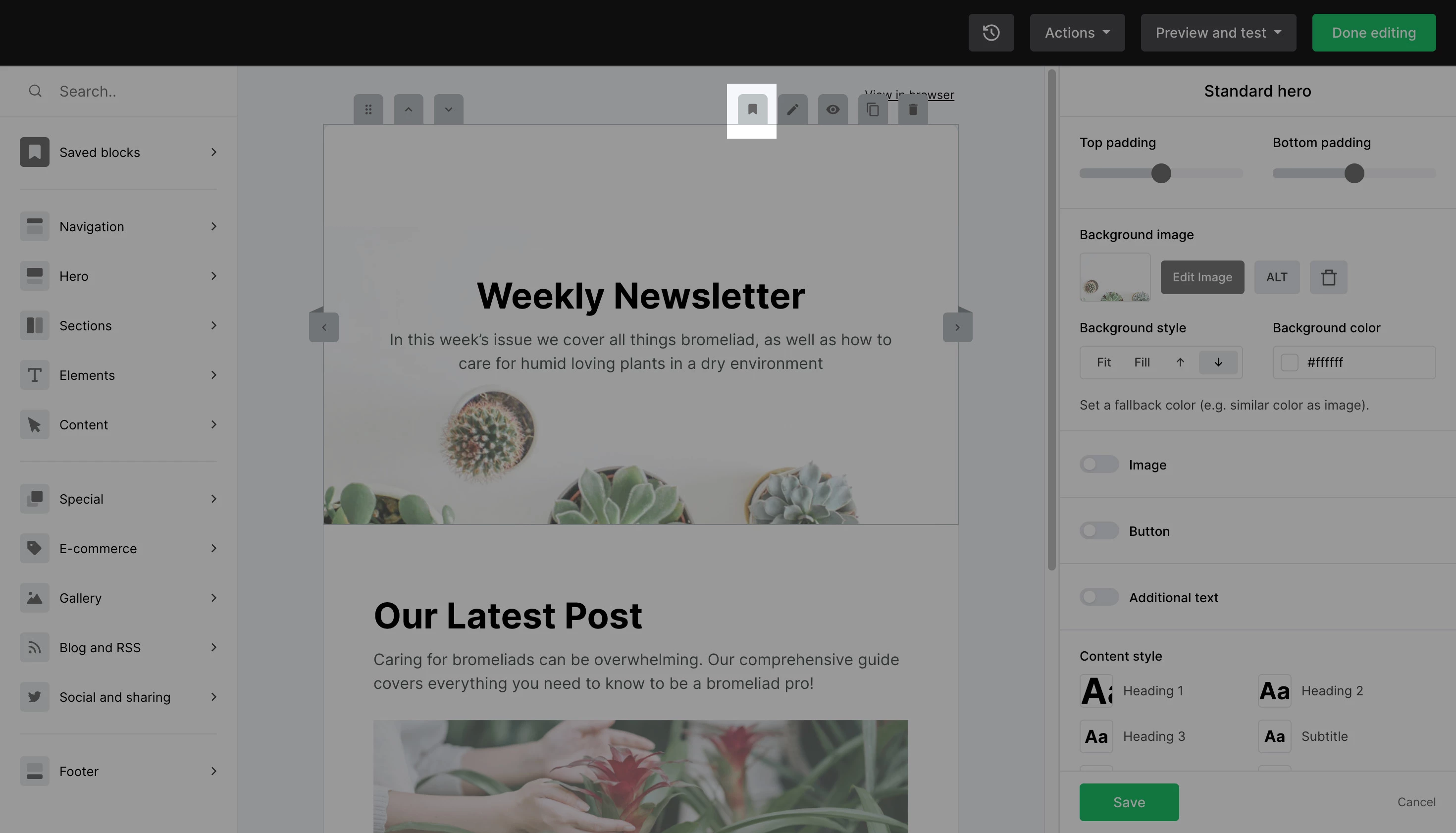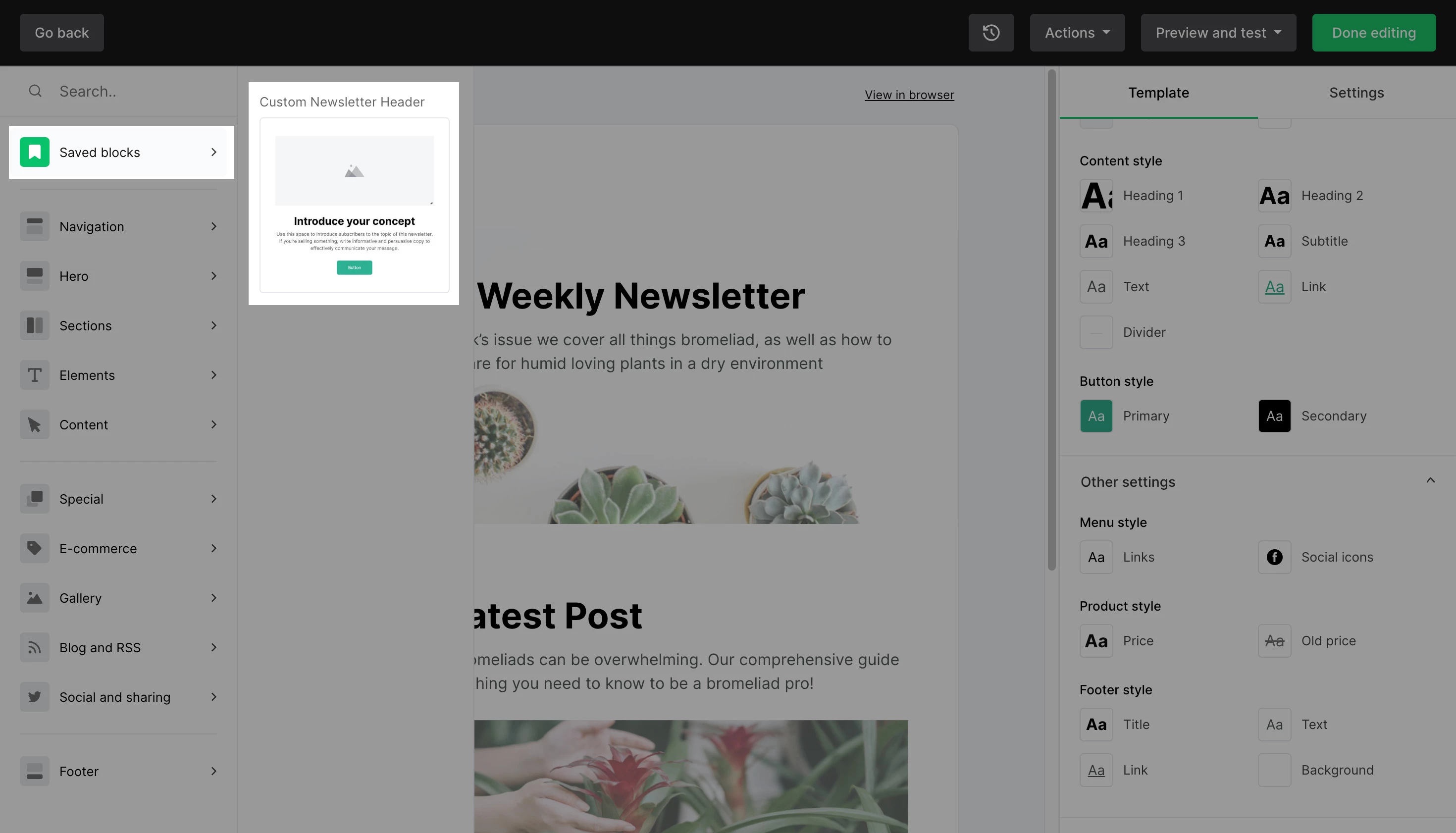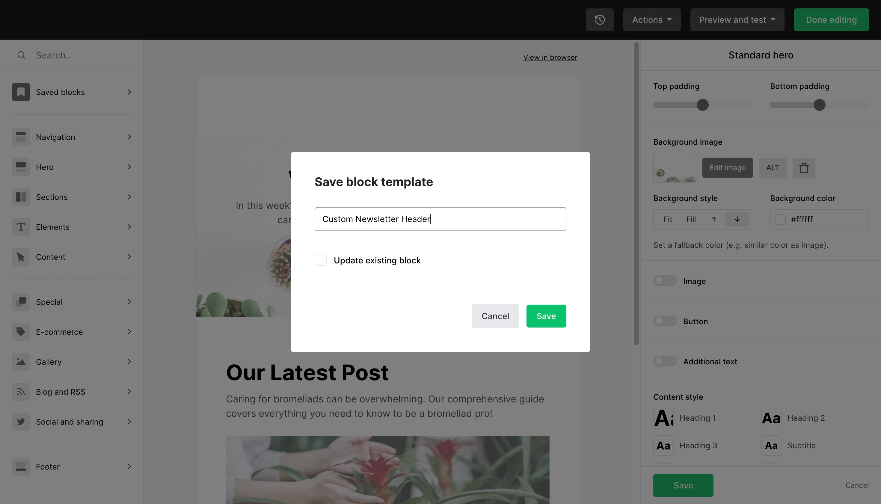 Save time while creating campaigns by saving individual blocks for future use. Once you have saved a block, you can easily use it again in future campaigns without needing to save the full template.
