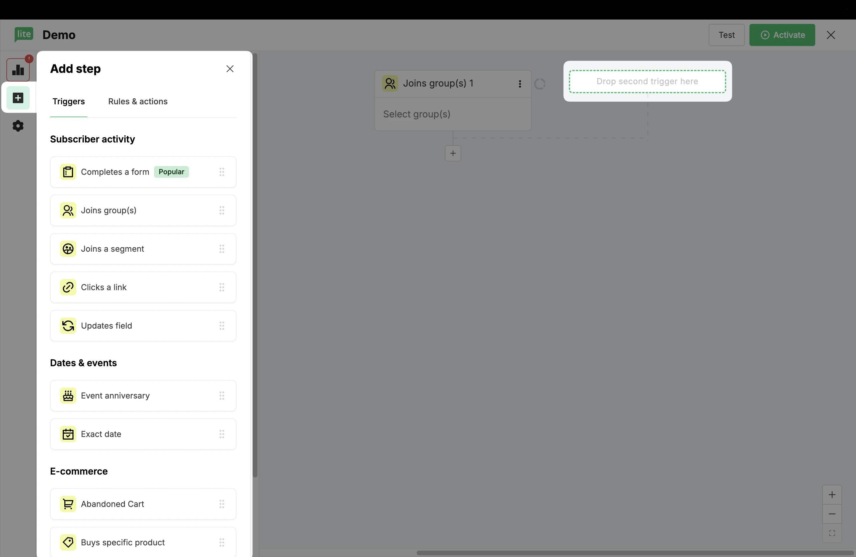 If you are using the New MailerLite with an Advanced plan, you can add up to three triggers to each automation, allowing you to set up multiple entry paths to a single workflow.