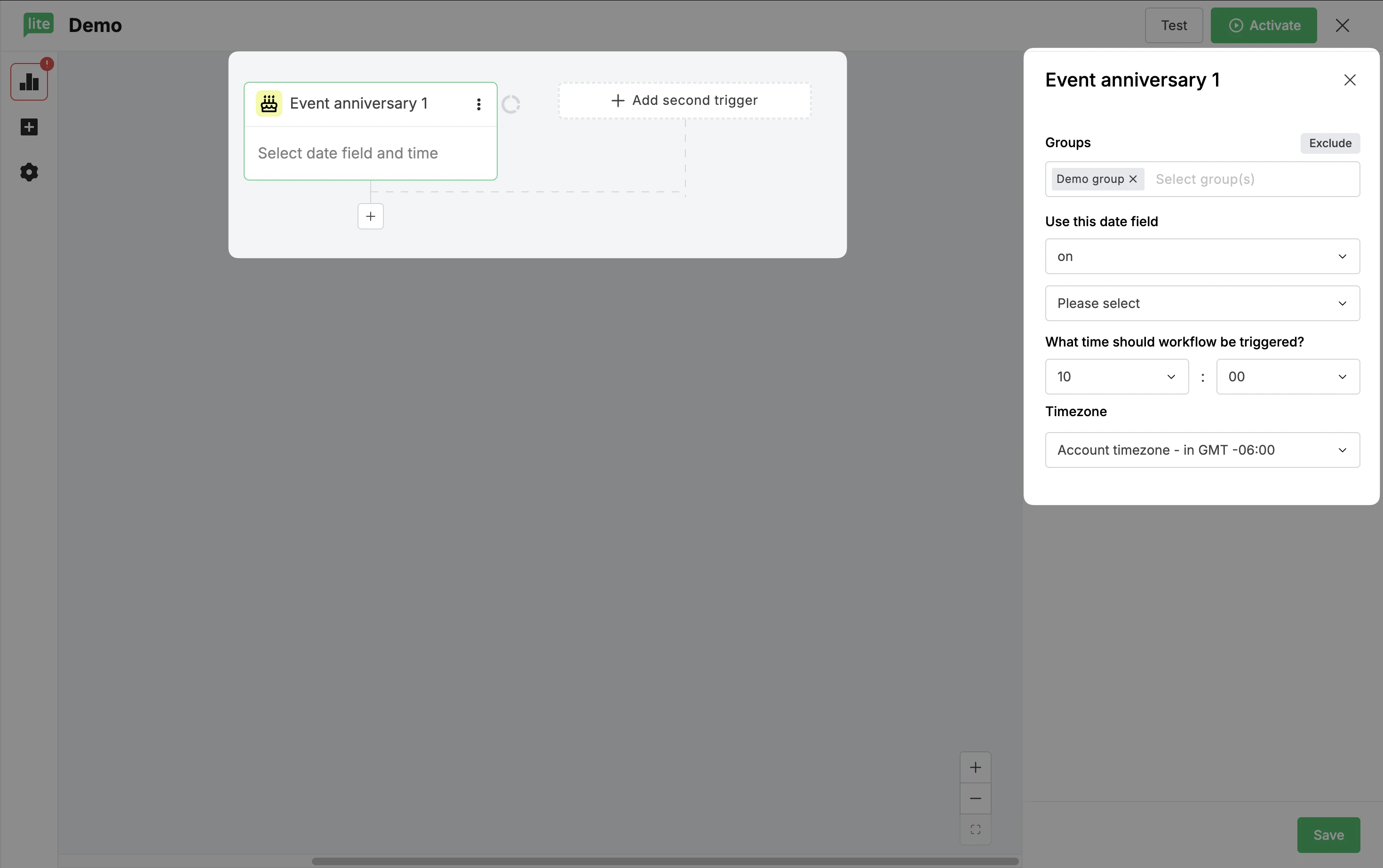 Event anniversary trigger automatically initiates a workflow every year on a specific date, such as for birthdays or anniversaries. This trigger relies on a date custom field to send timely, personalized emails to your subscribers.