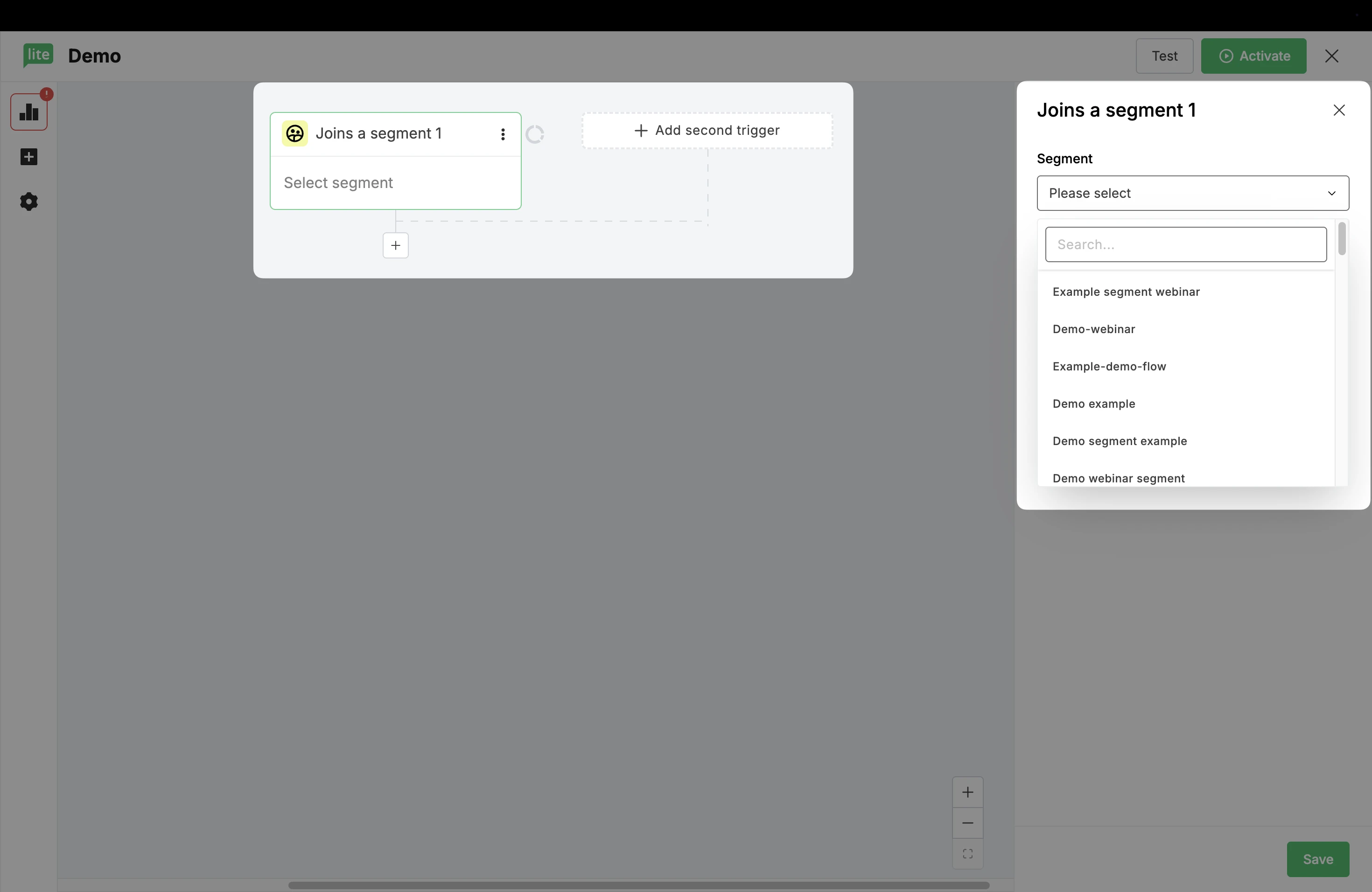 This trigger activates a workflow when a subscriber matches the criteria of a specific segment.