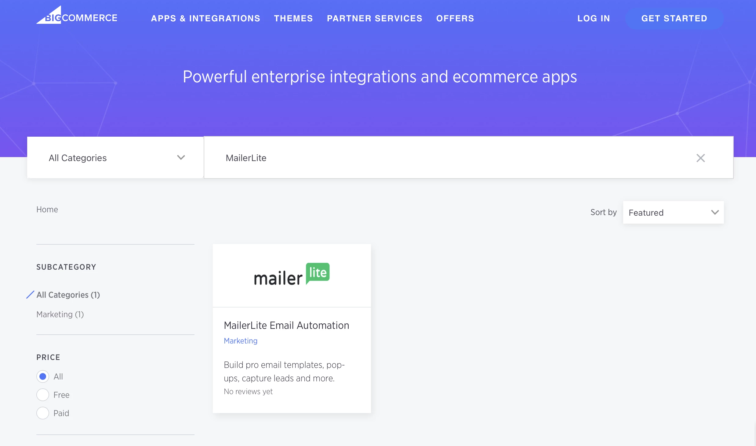Connect your MailerLite account with BigCommerce to automatically add your customers as MailerLite subscribers. By installing the integration, you’ll also have access to additional e-commerce features such as abandoned cart email automations, and much more.