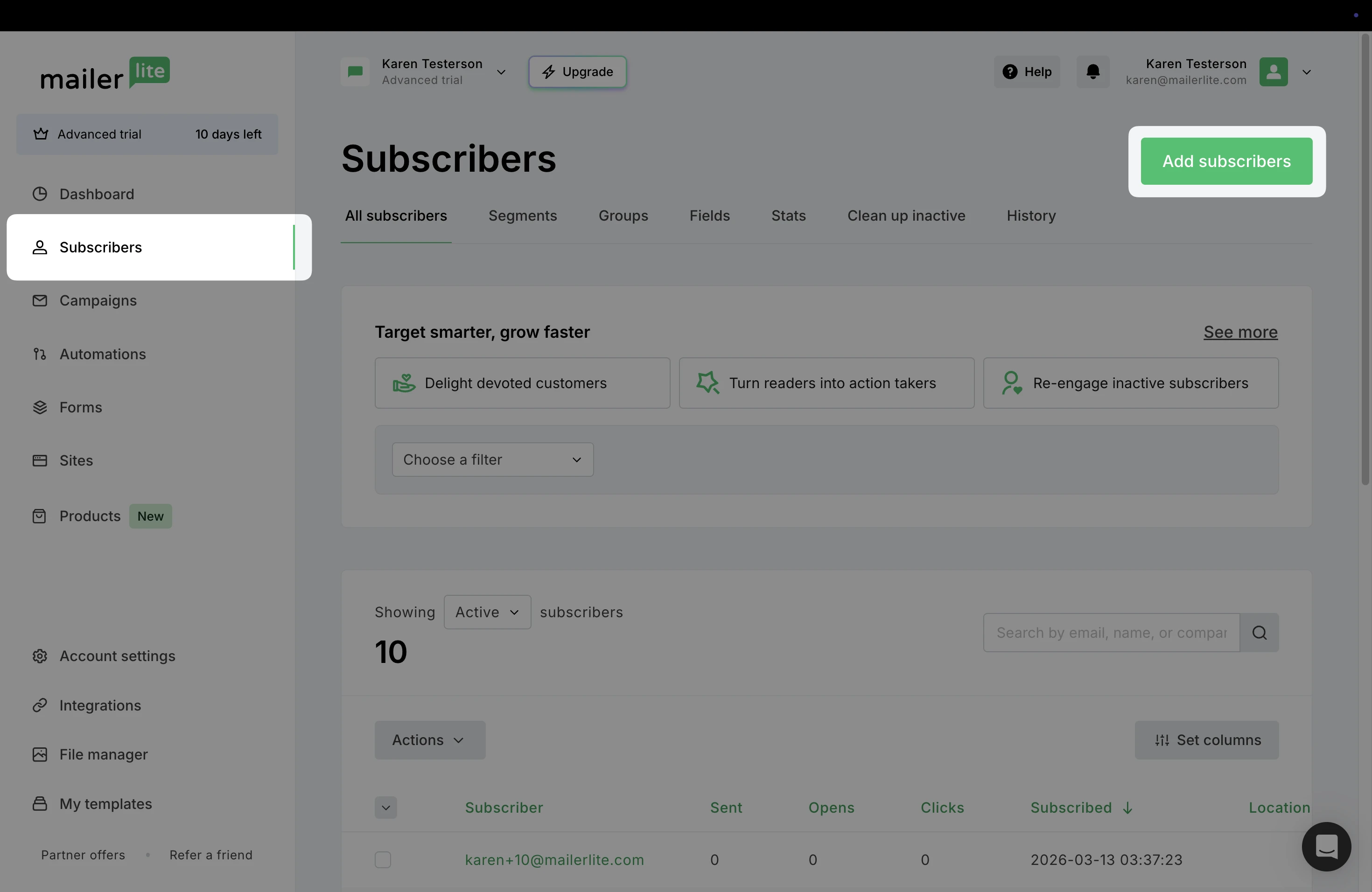 That’s it! You can find your imported subscribers in the Subscribers area, as well as any Groups and Segments that have been created from the Tags and Segments in your Mailchimp account.