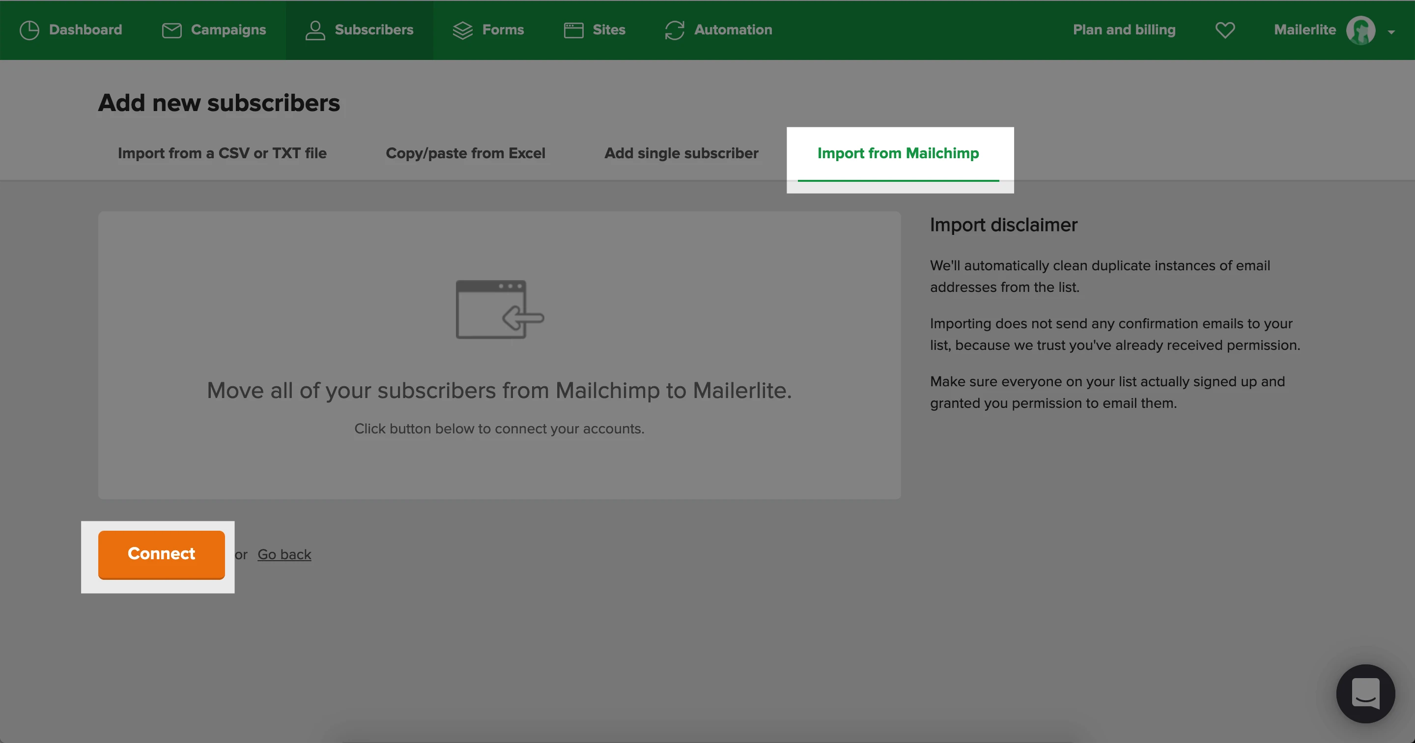 It only takes a few simple steps to switch from Mailchimp to MailerLite using our Mailchimp integration.