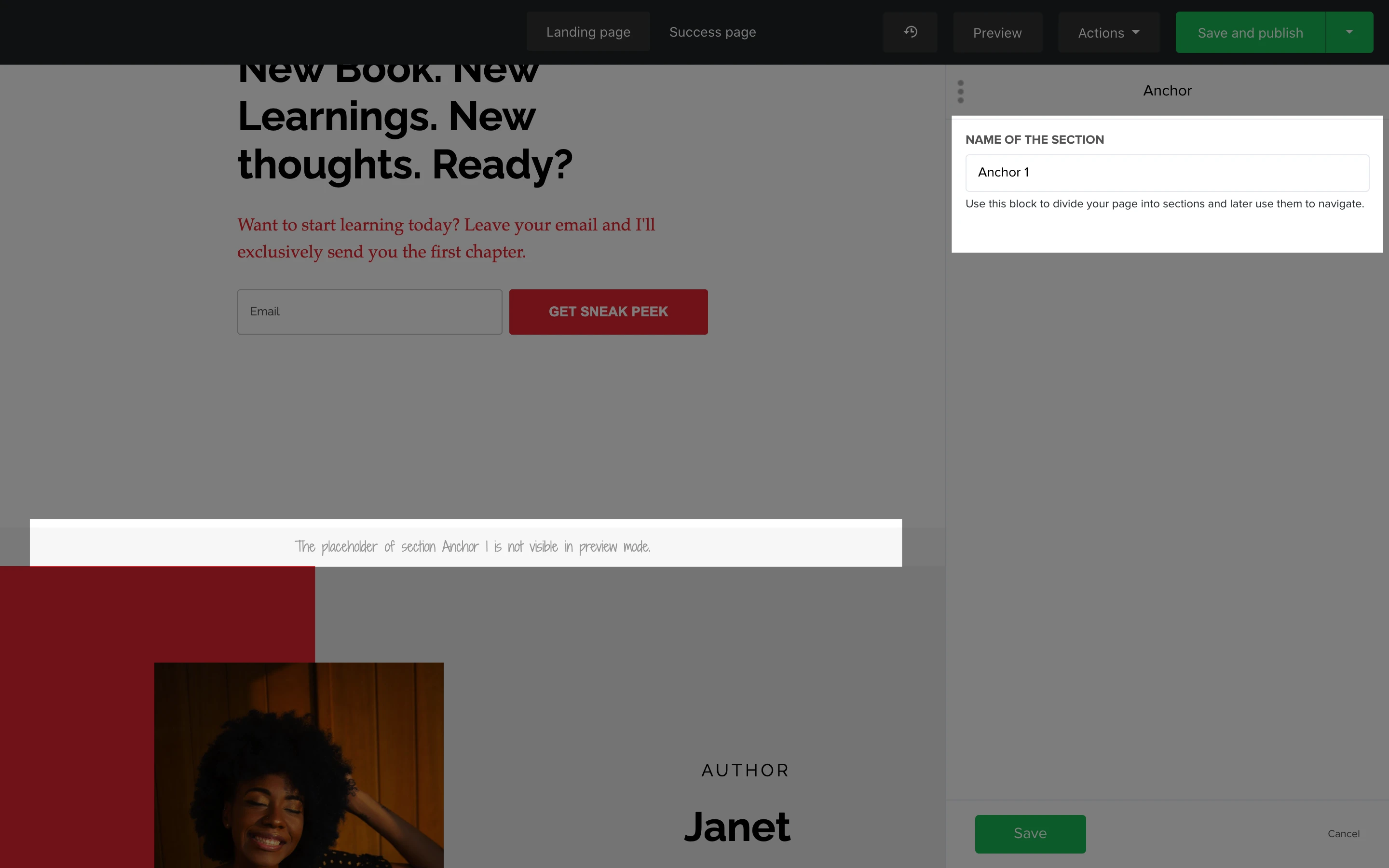Note: When adding multiple anchor blocks, make sure to give them different names as you will need to be able to identify them in a dropdown menu later.