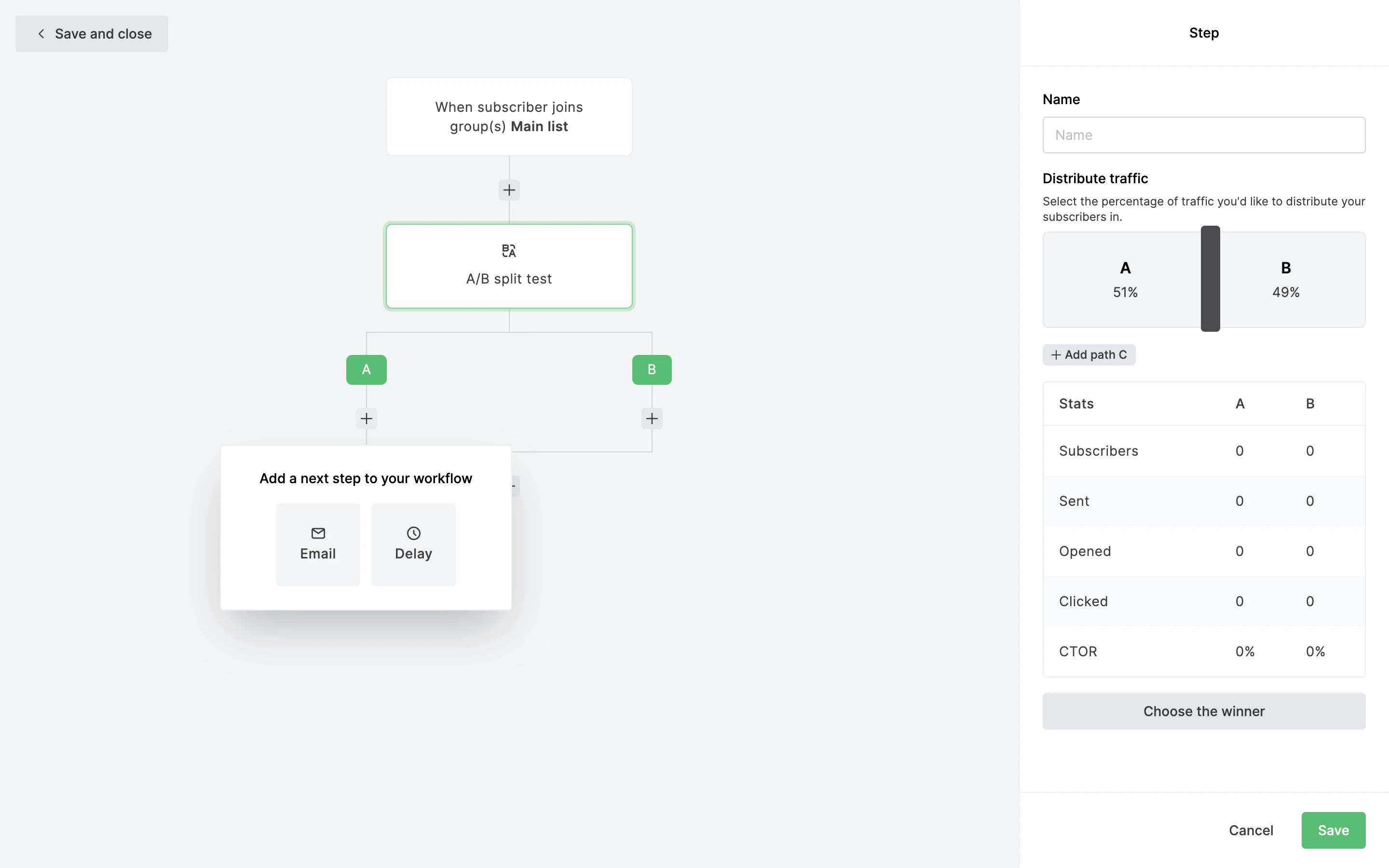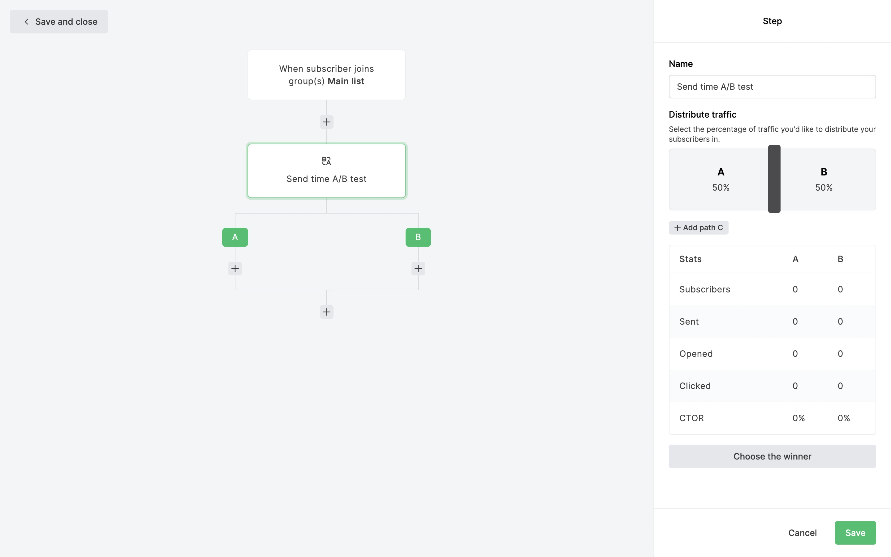 Learn more about the A/B split testing step in this article on how to use A/B split testing for automations.