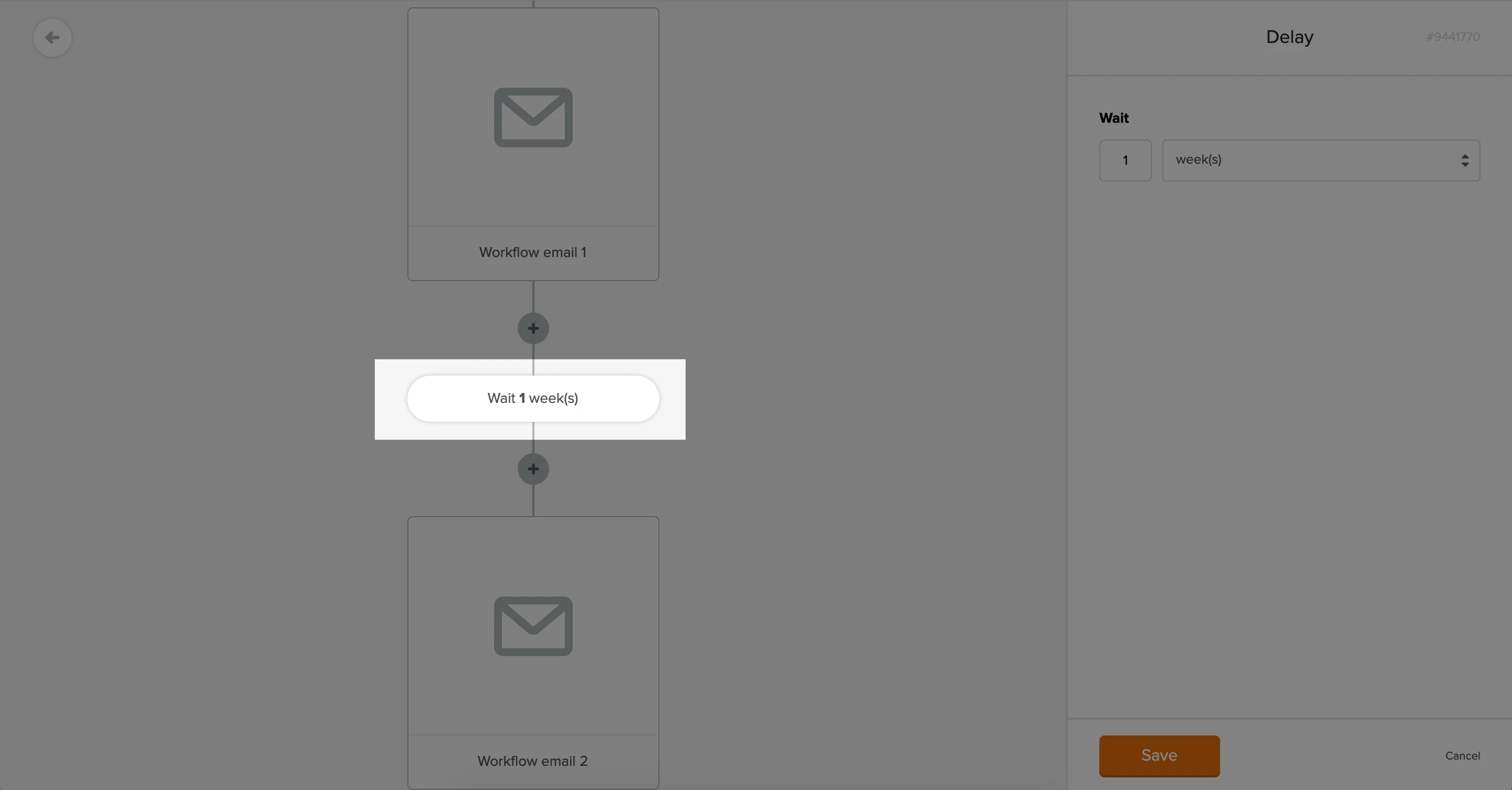 It allows you to add breaks before or between steps. For example, if you have three emails in your workflow and you want them each to be sent one week apart, you would add a Delay step of one week between each Email step.