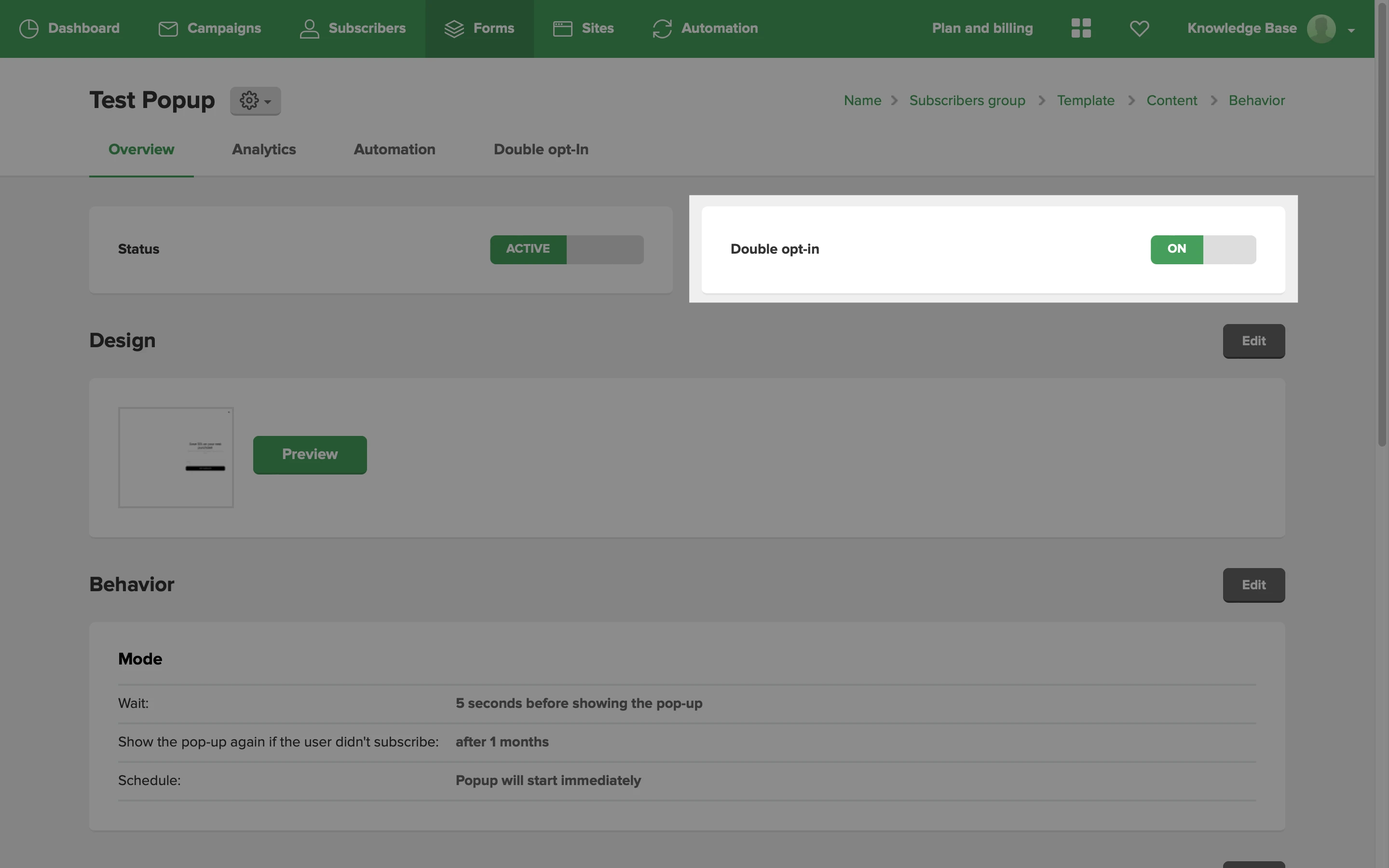 Note: Each form has its own double opt-in email. If you plan to have customized double opt-in emails for every form, you will need to create them separately.