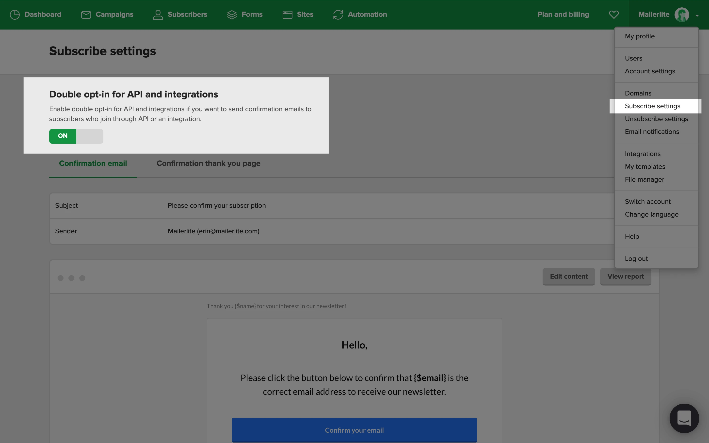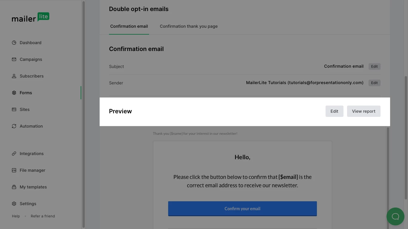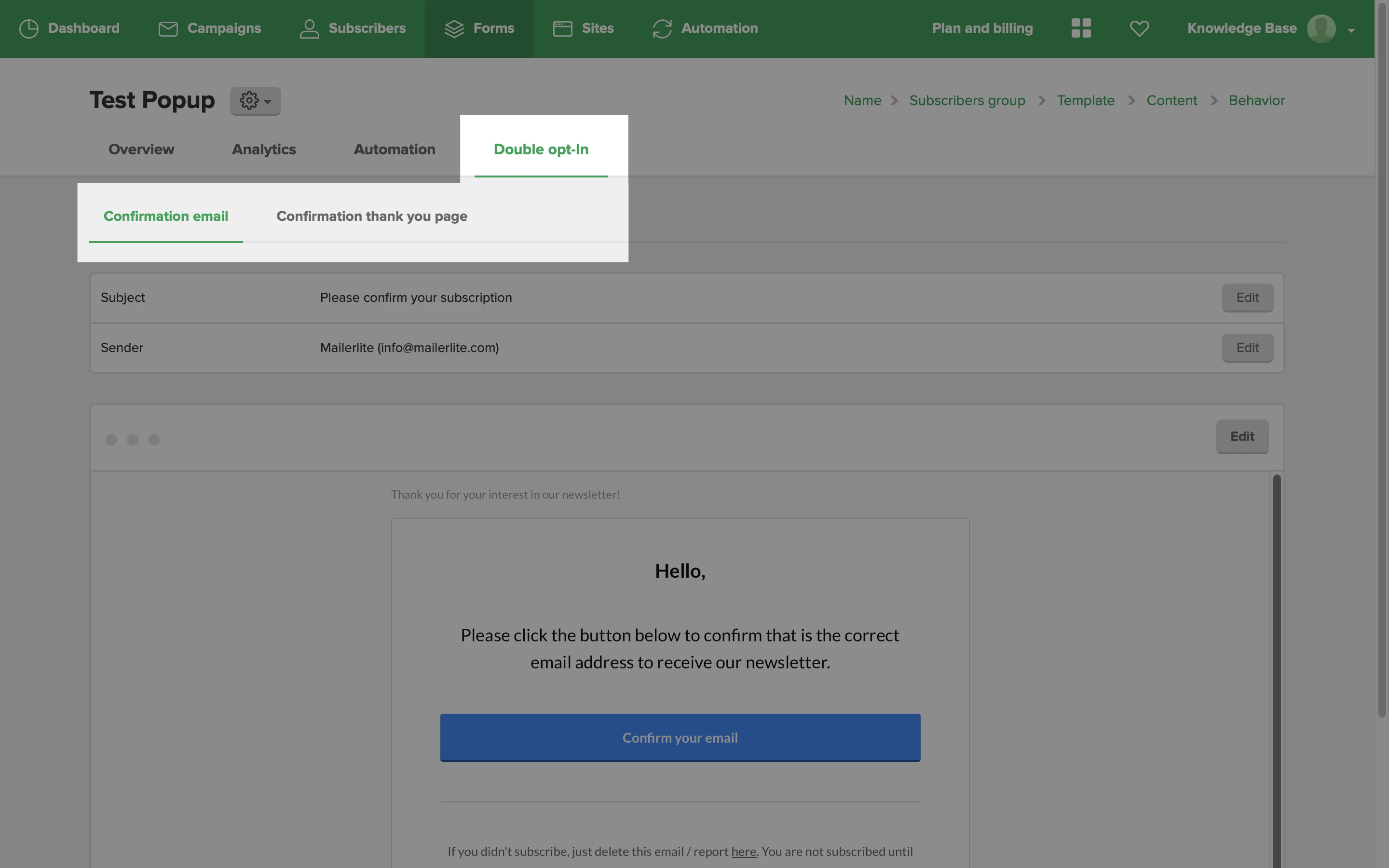 Important: Editing double opt-in confirmation emails is only available on MailerLite's paid plans.