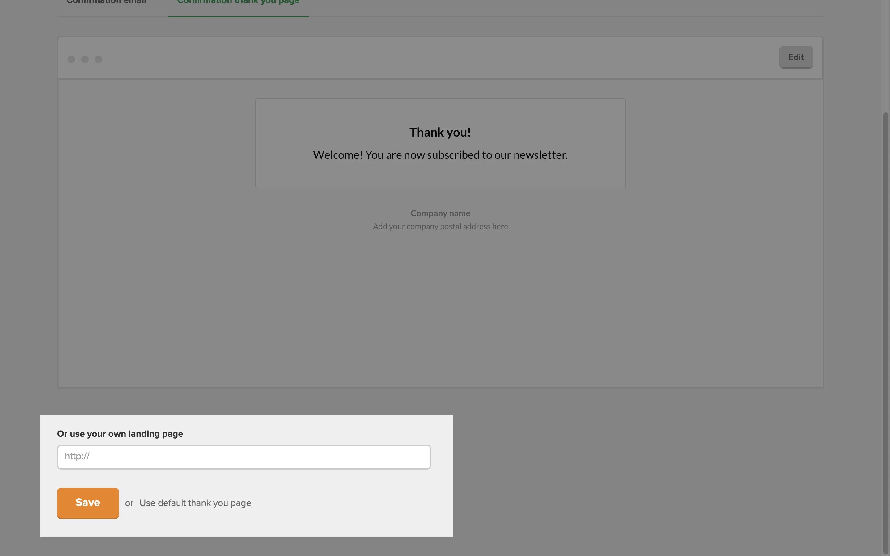 If you wish to redirect subscribers to your own landing page after they confirm their subscription on the confirmation email:
