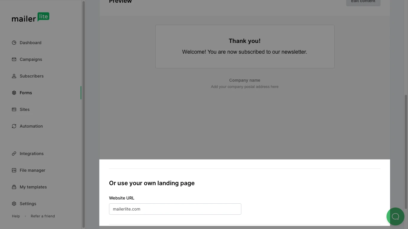 Insider the URL where your new subscribers will be redirected.