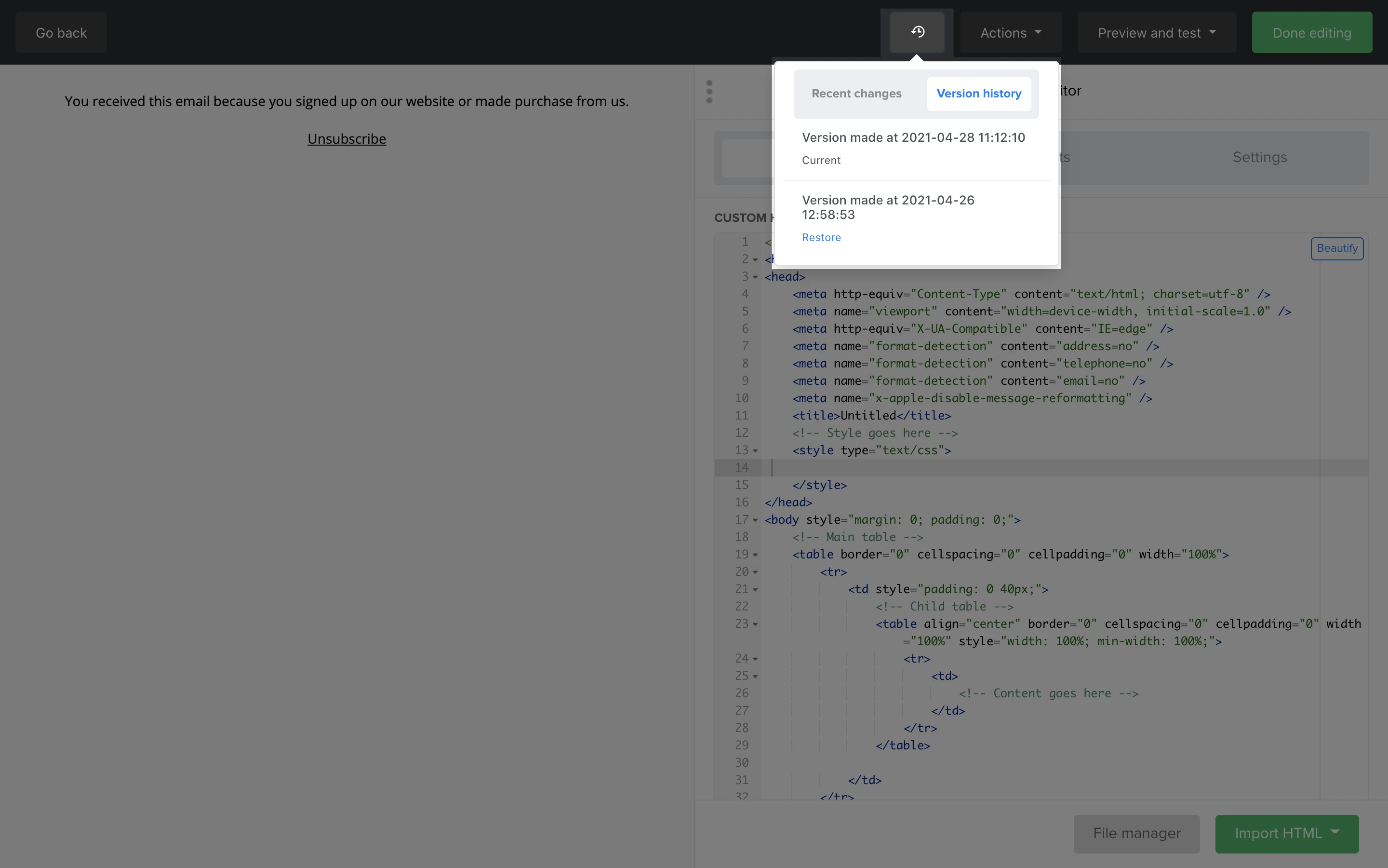 Click the Recent changes tab to undo recent changes or click the Version history tab to restore a previously saved version of your campaign.