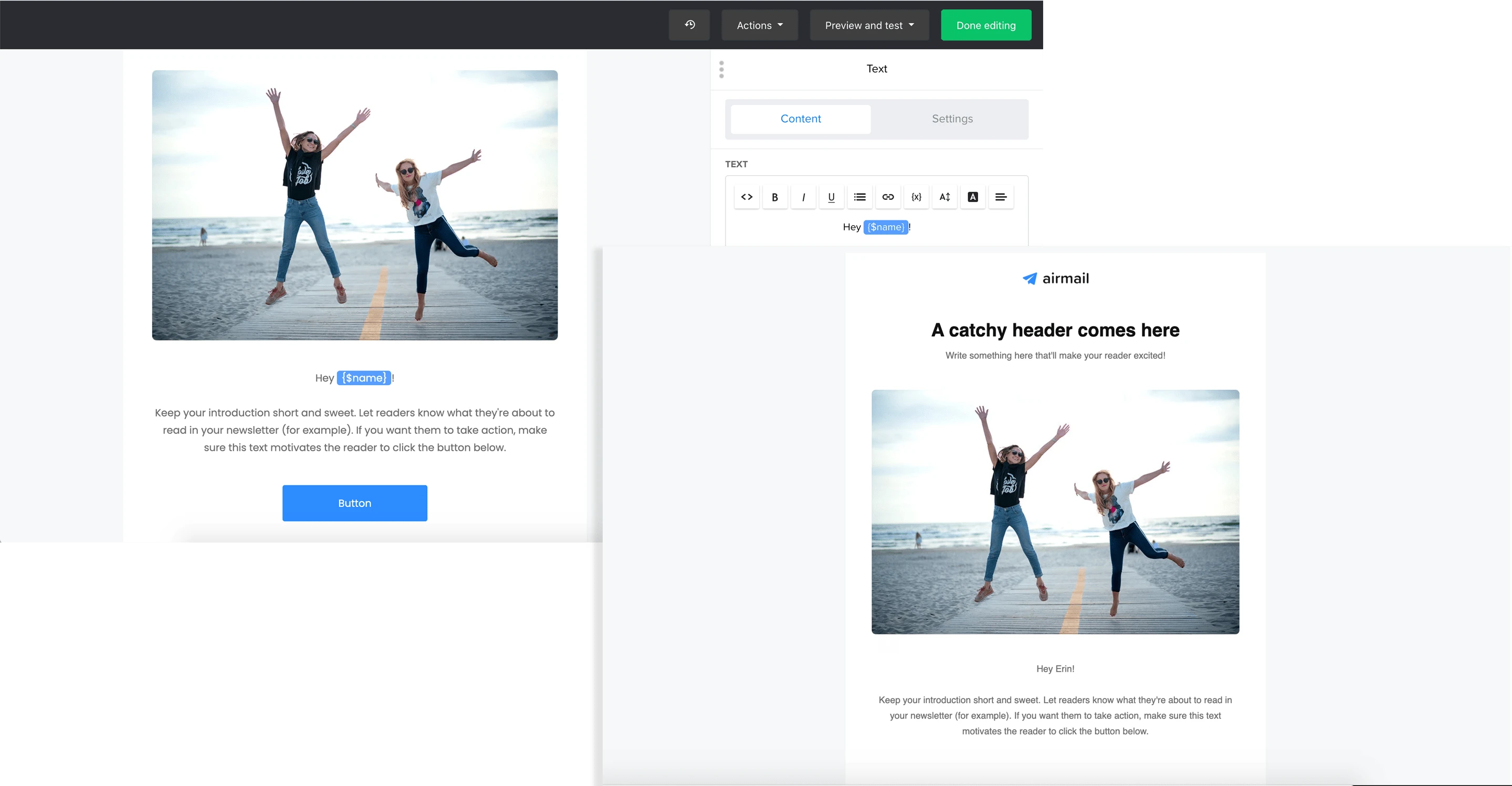 {$name} – inserts your subscriber’s first name (if it’s available).