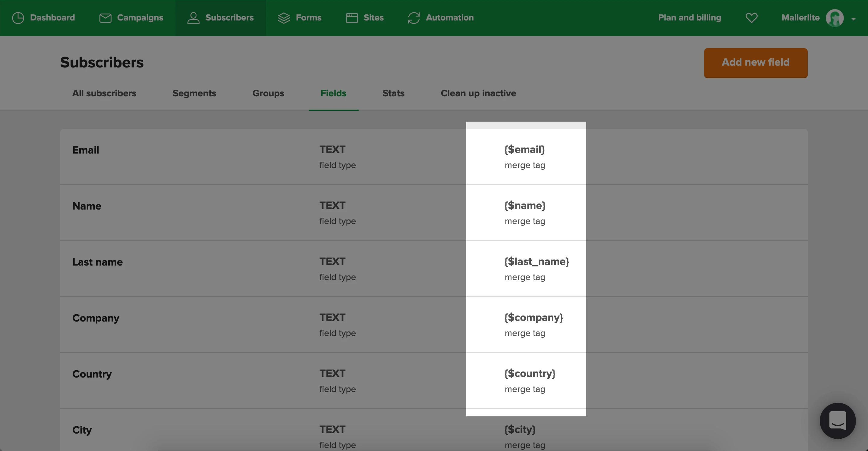Every field in MailerLite has an accompanying Tag, including the fields you created yourself.