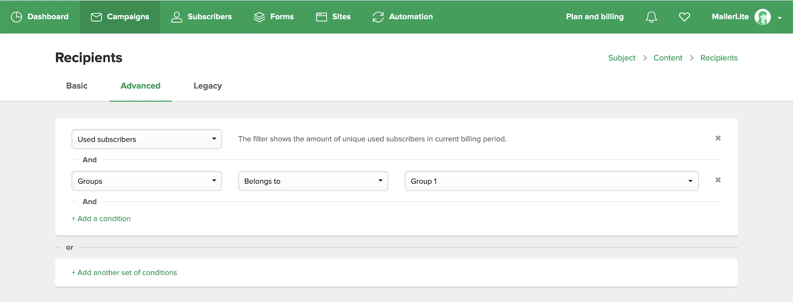 Therefore, you should choose a plan that includes the number of subscribers you wish to send a campaign to on a monthly basis.