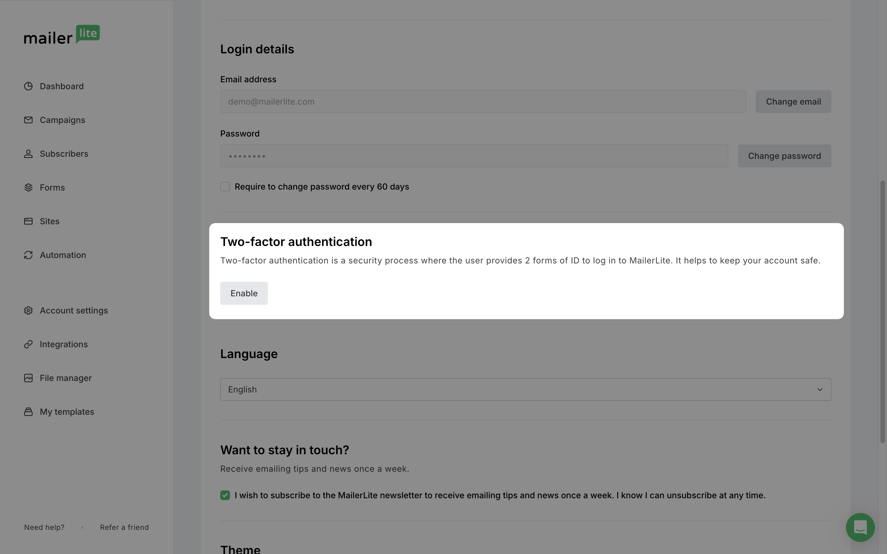 By following these steps and best practices to secure your account, you can be sure that your MailerLite account and data are well protected 🔐