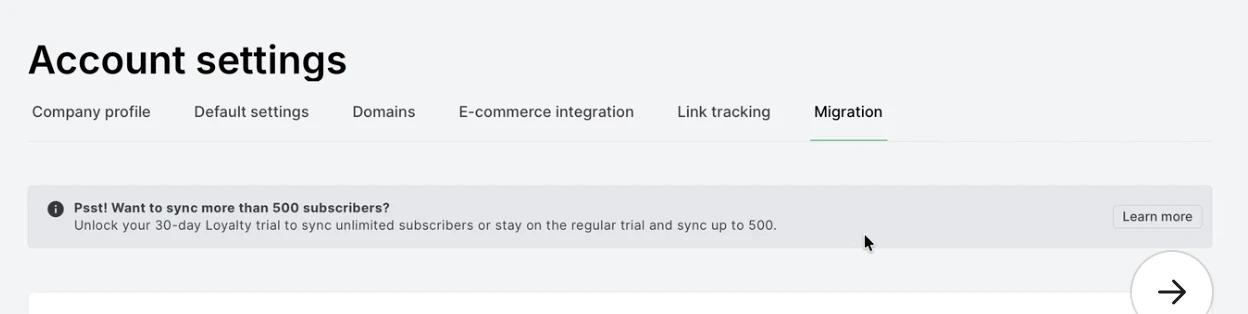 2. In new MailerLite, go to Account Settings → Migration tab and select the option to unlock the 30-day Loyalty Trial.