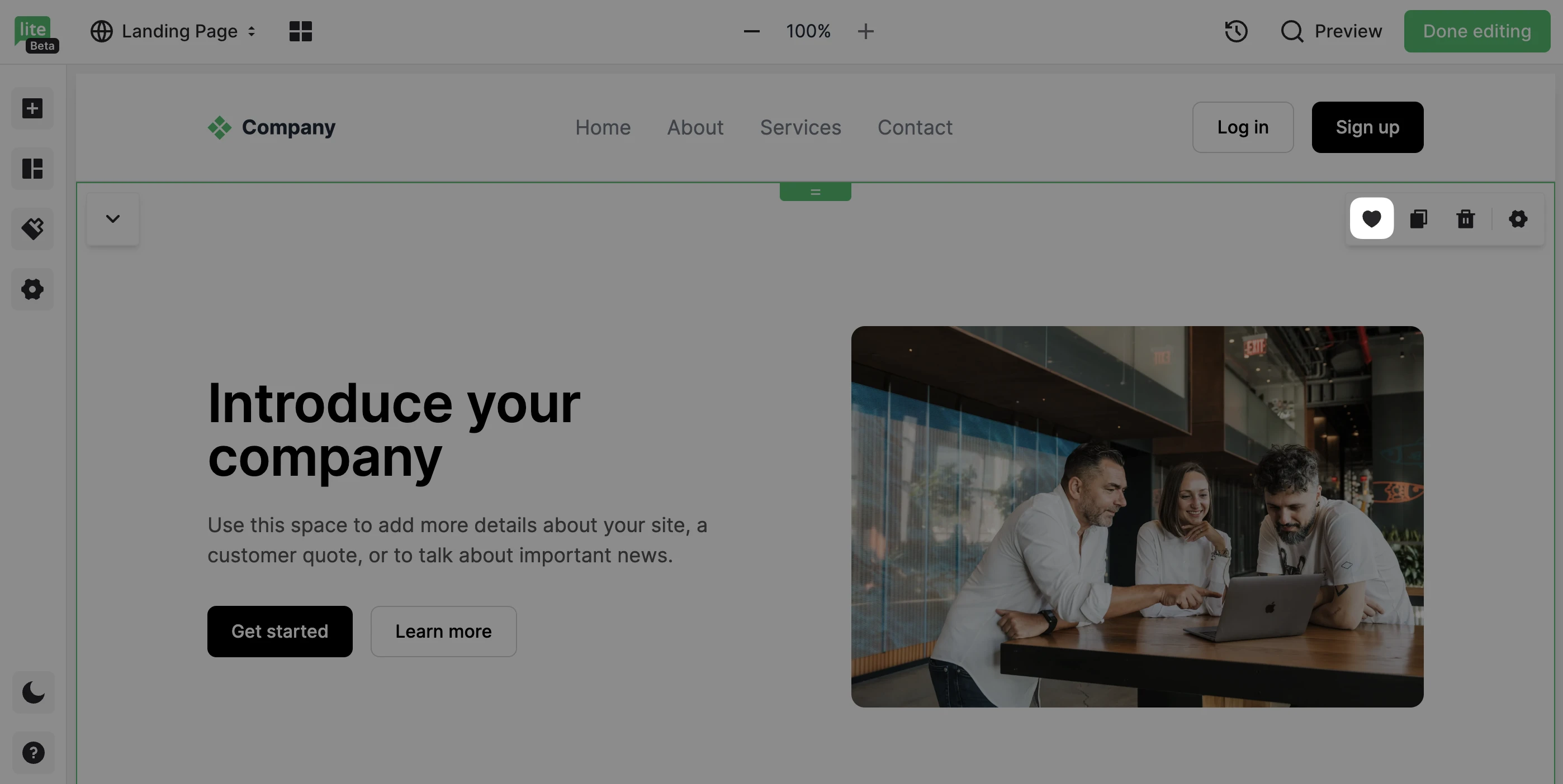 Once you’re done editing, click the Done editing button; or click the three horizontal dots to save your landing page as a template.