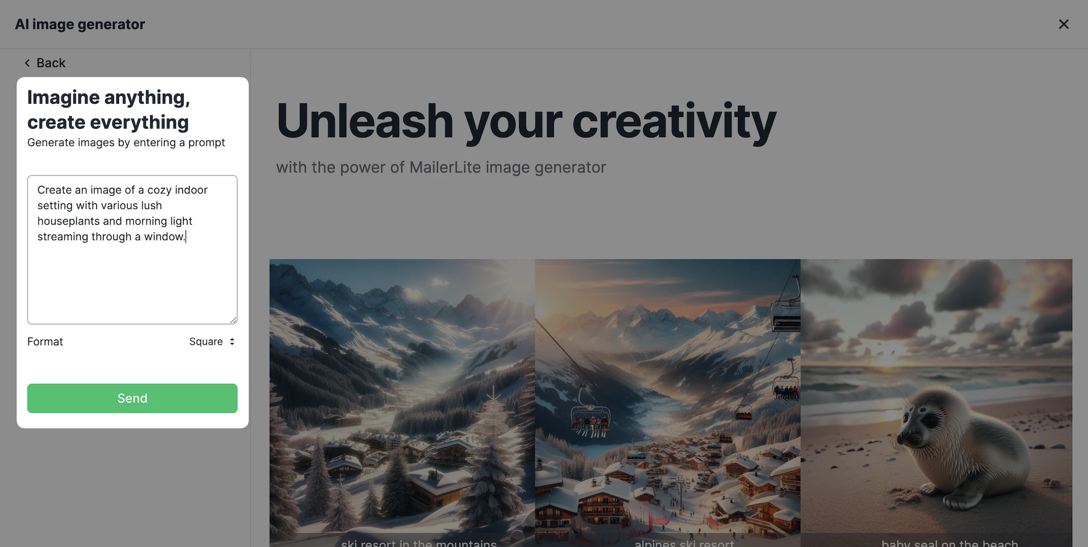 3. Enter your prompt and select an image format (square, portrait or landscape).
