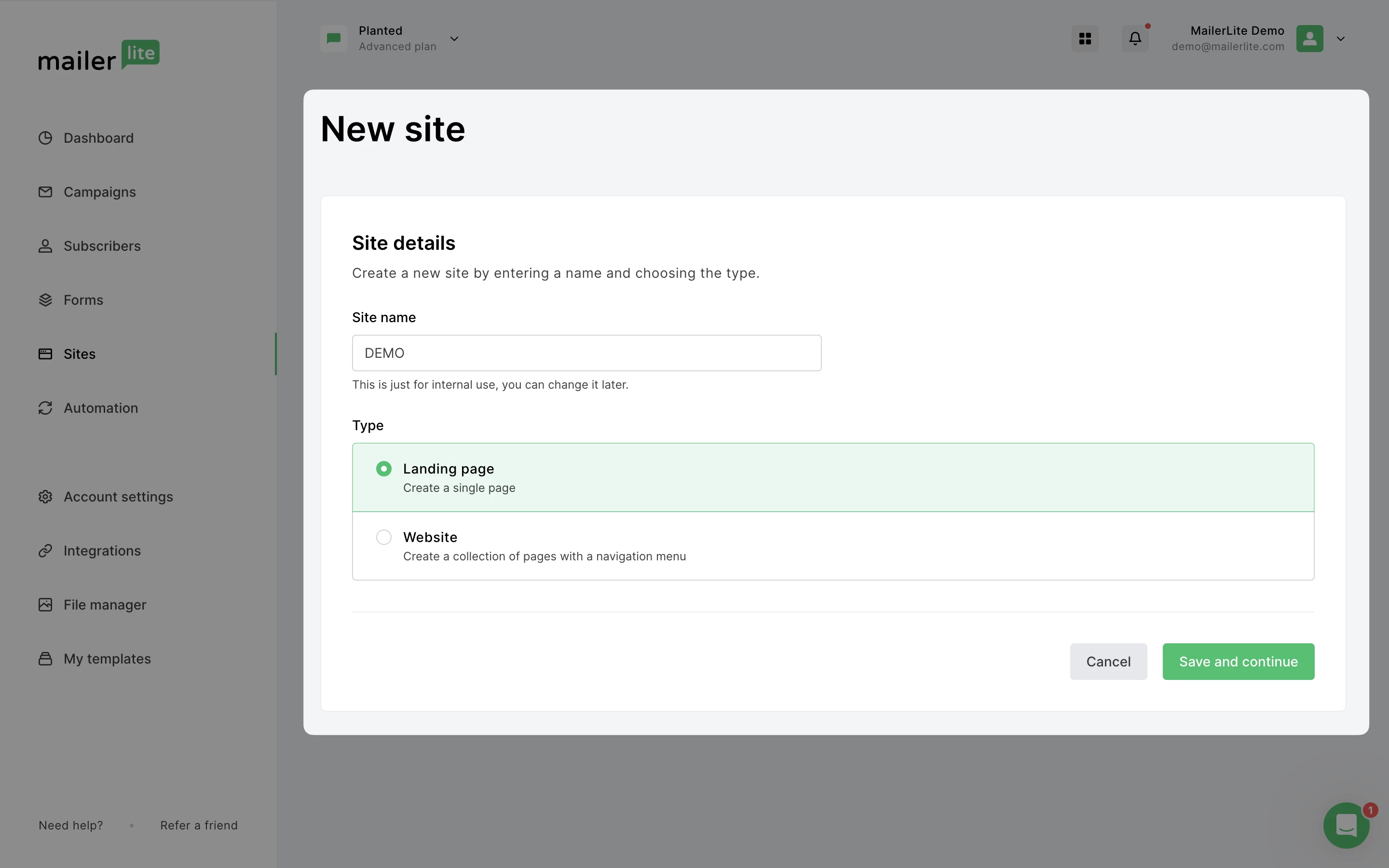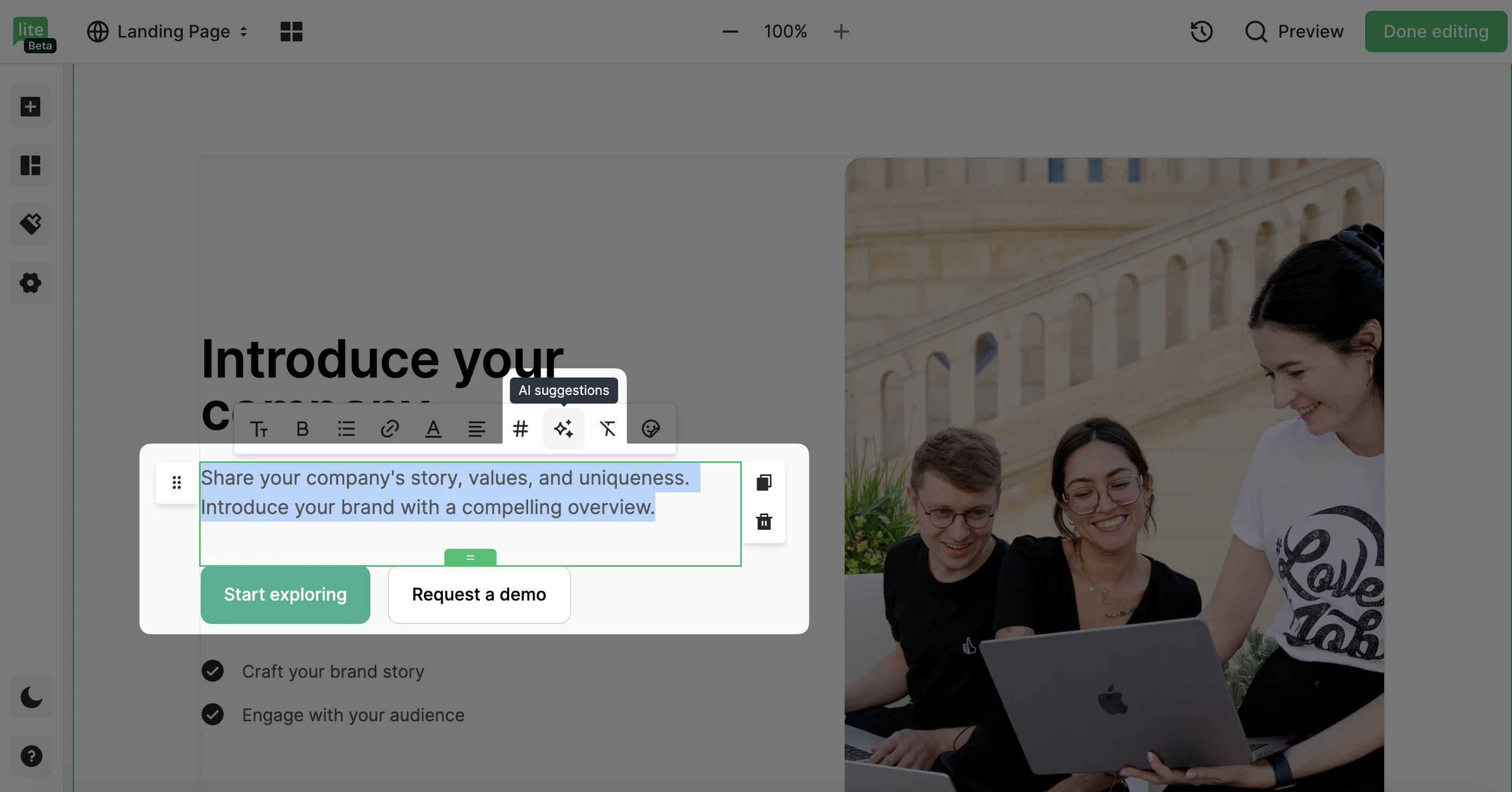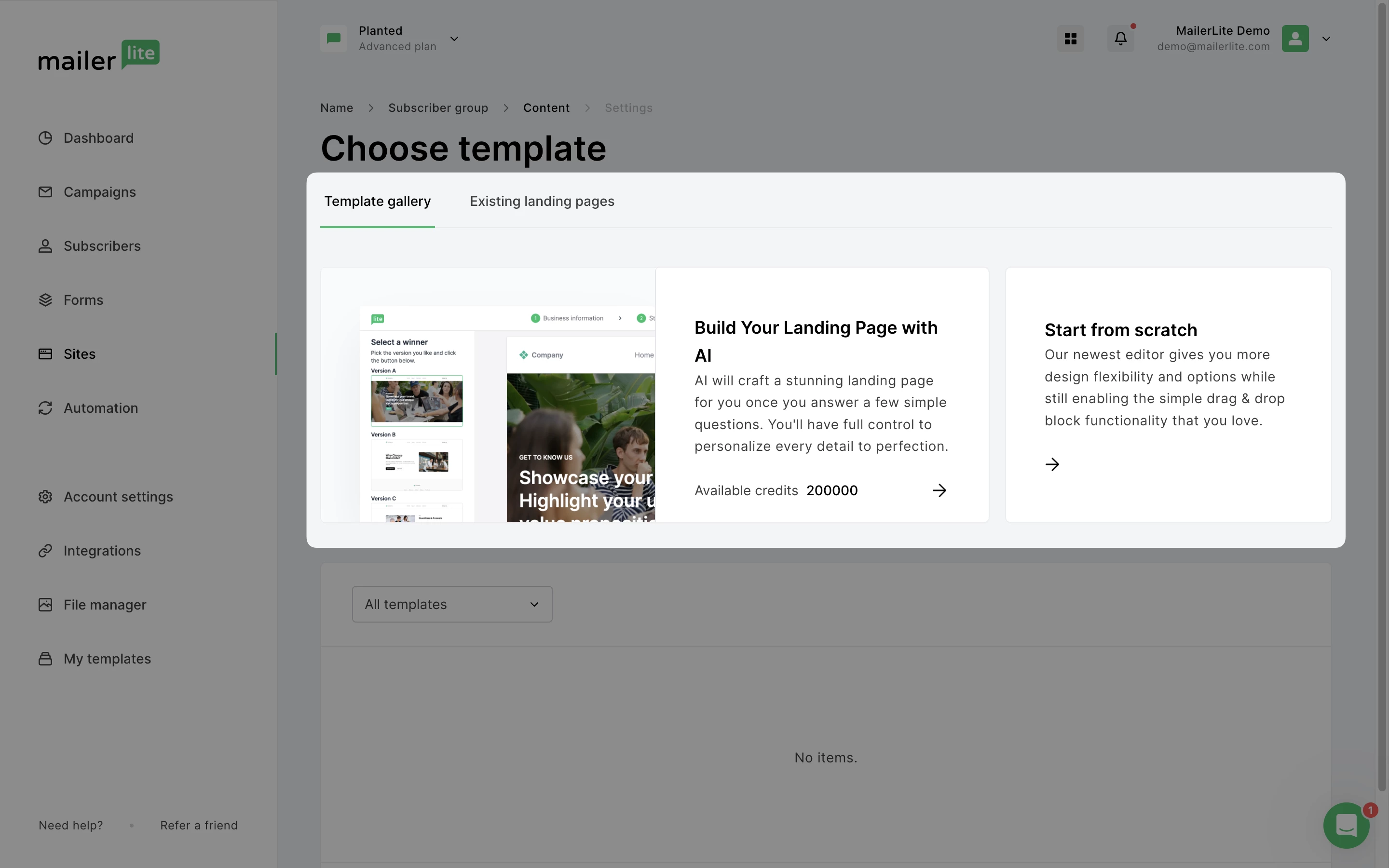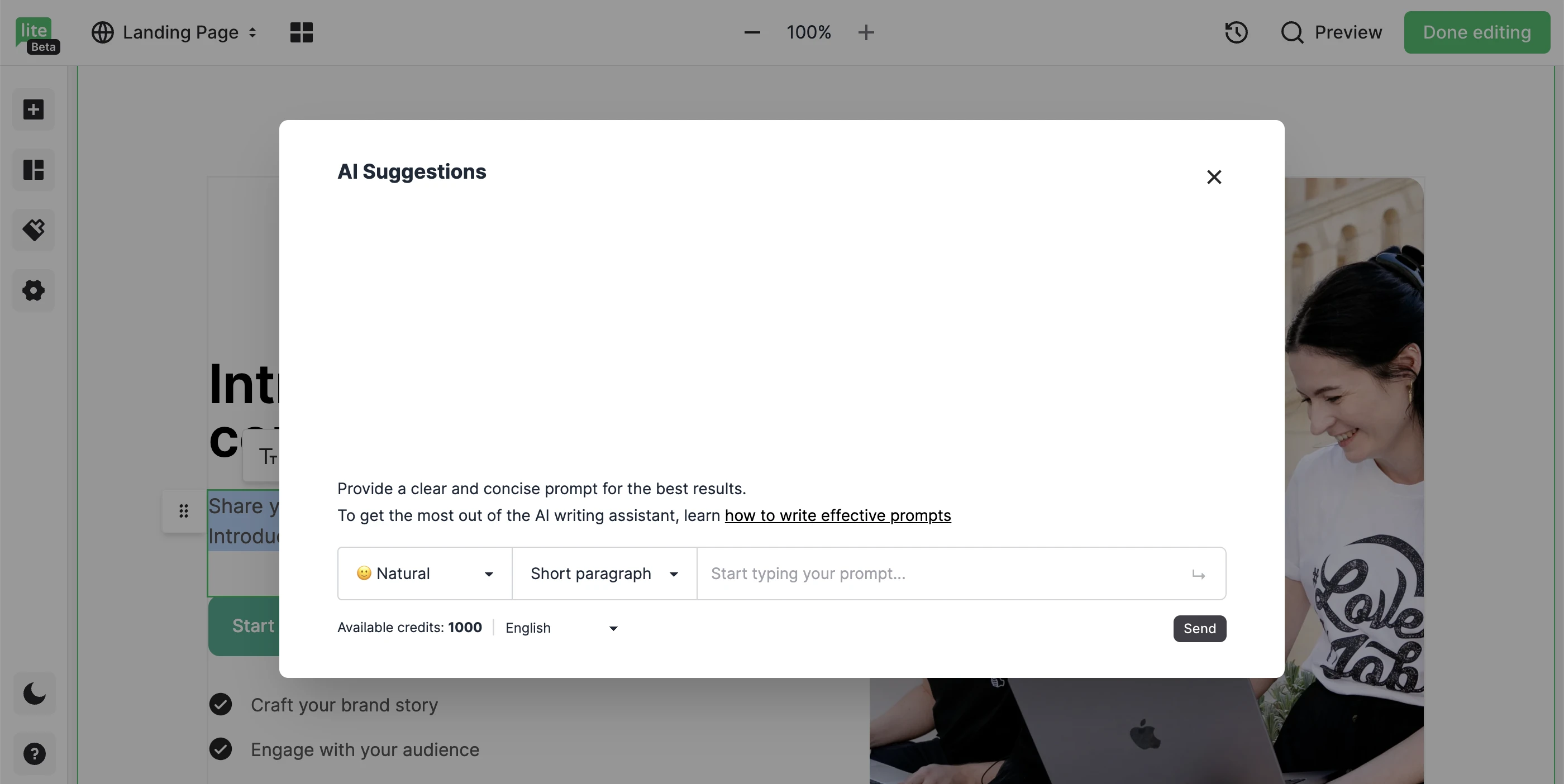 ⚠️ Generating a landing page using artificial intelligence is only available for accounts on Advanced plans.