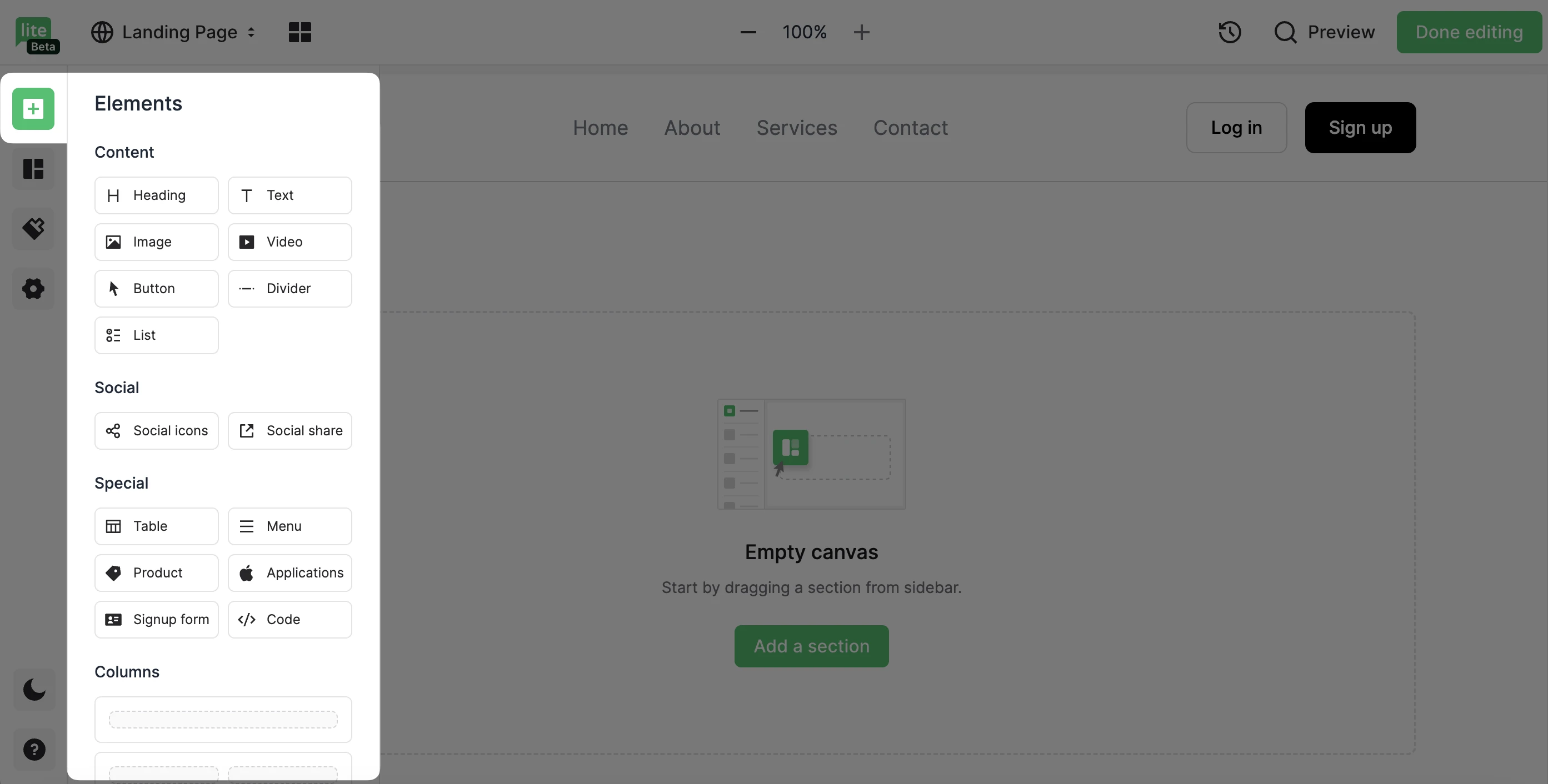 Content elements: Create compelling content with elements like headings, text, images, videos, and buttons. Tell your story and showcase your products or services in style