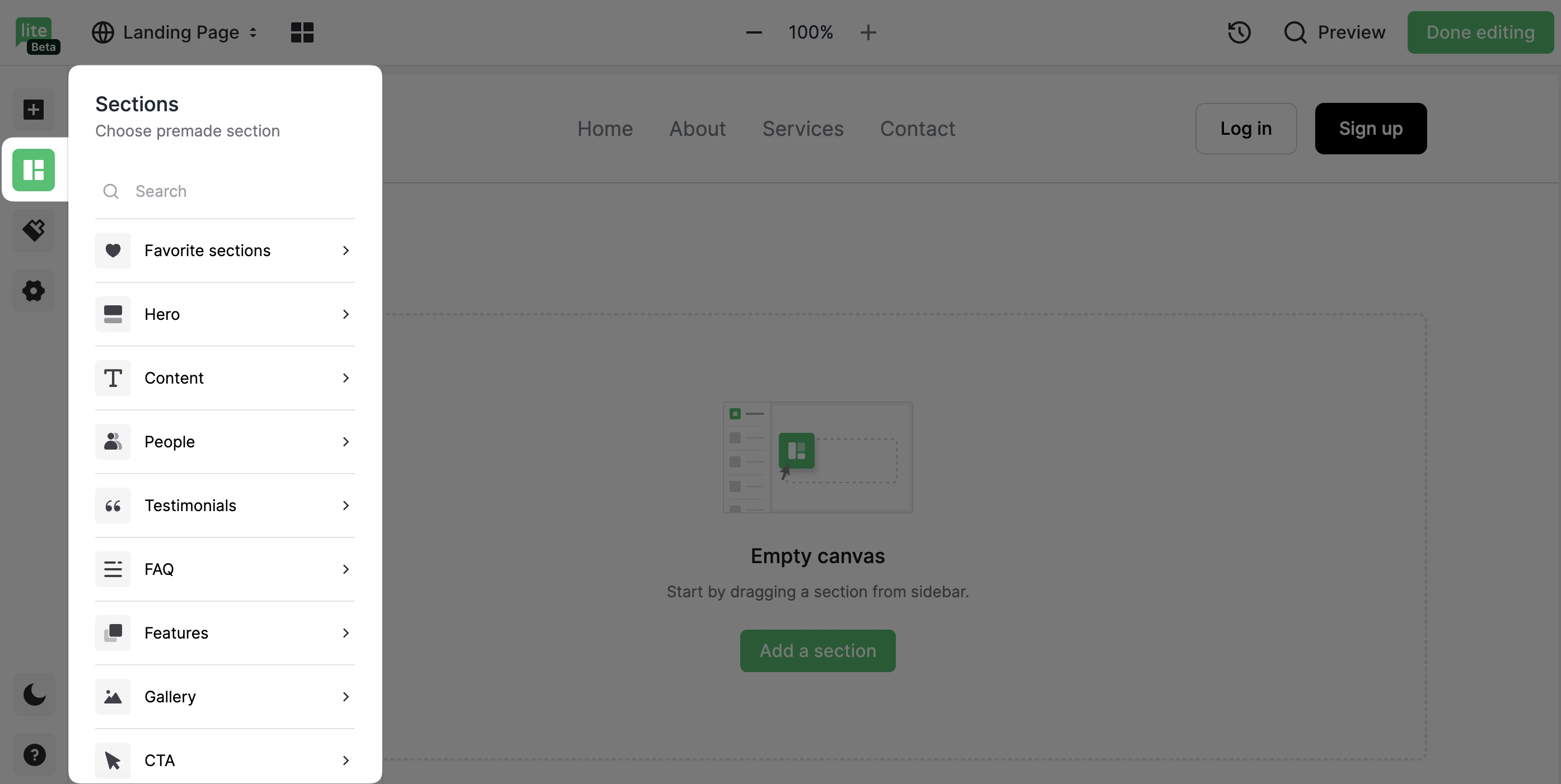 Once you’ve designed a section, save it to your Favorite sections folder so you can re-use it across all your landing pages.