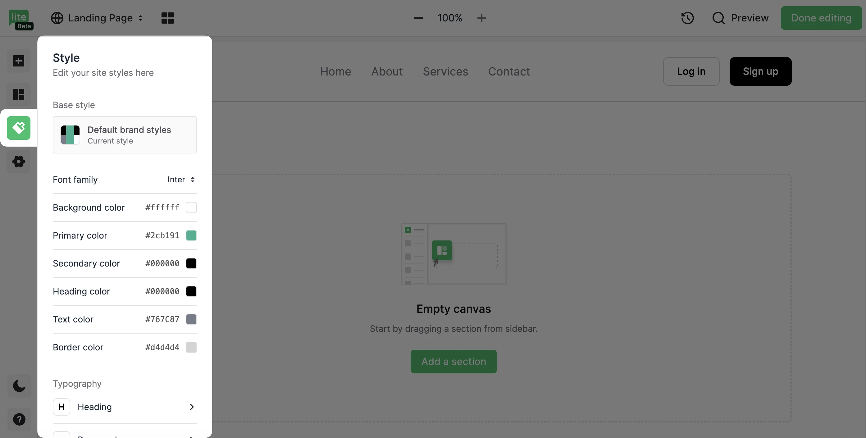 Set global brand styles, including fonts, colors, and typography, ensuring a consistent and professional look across your entire landing page.