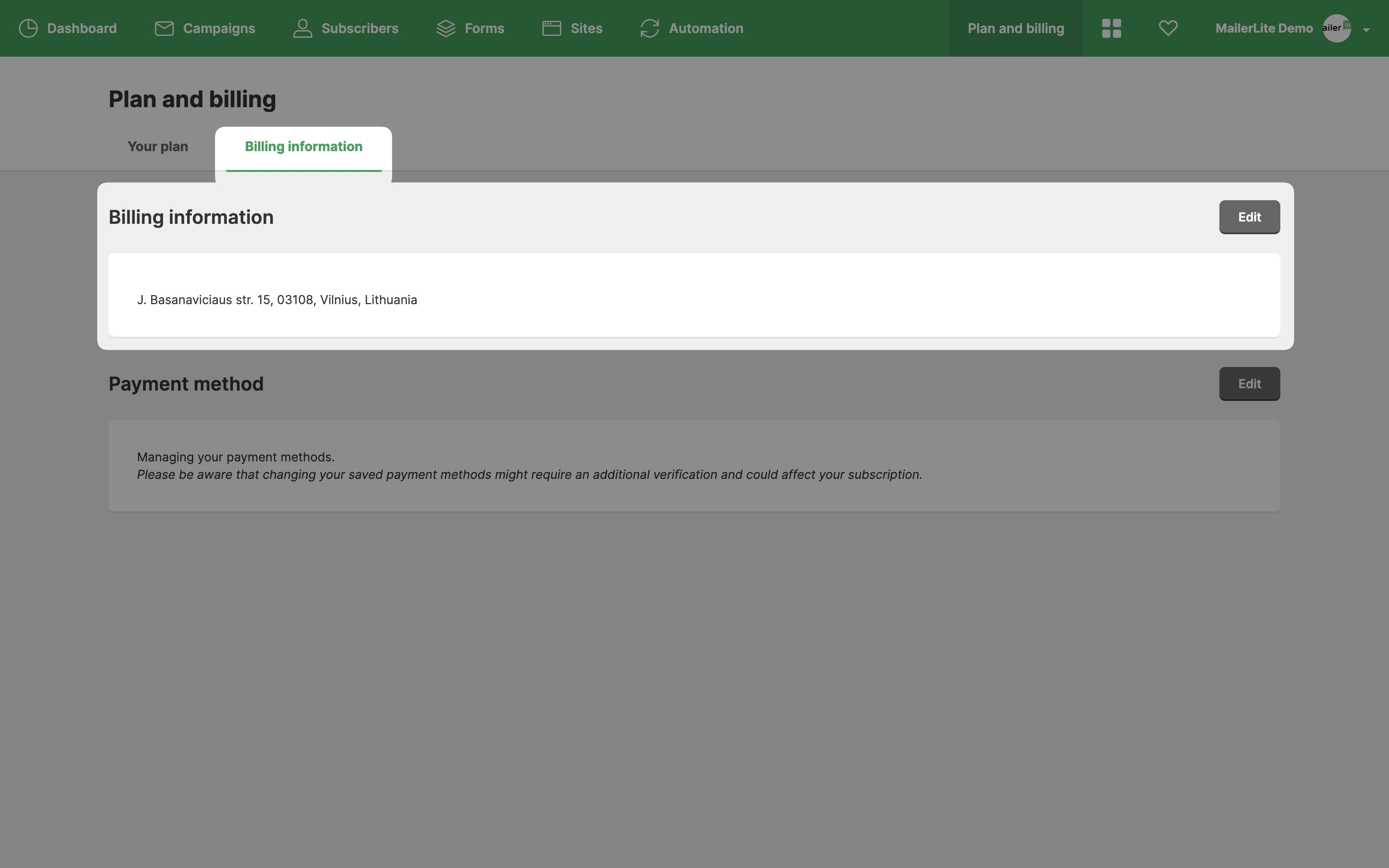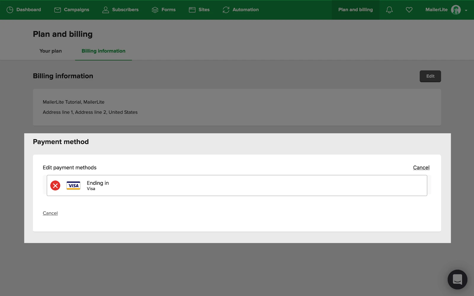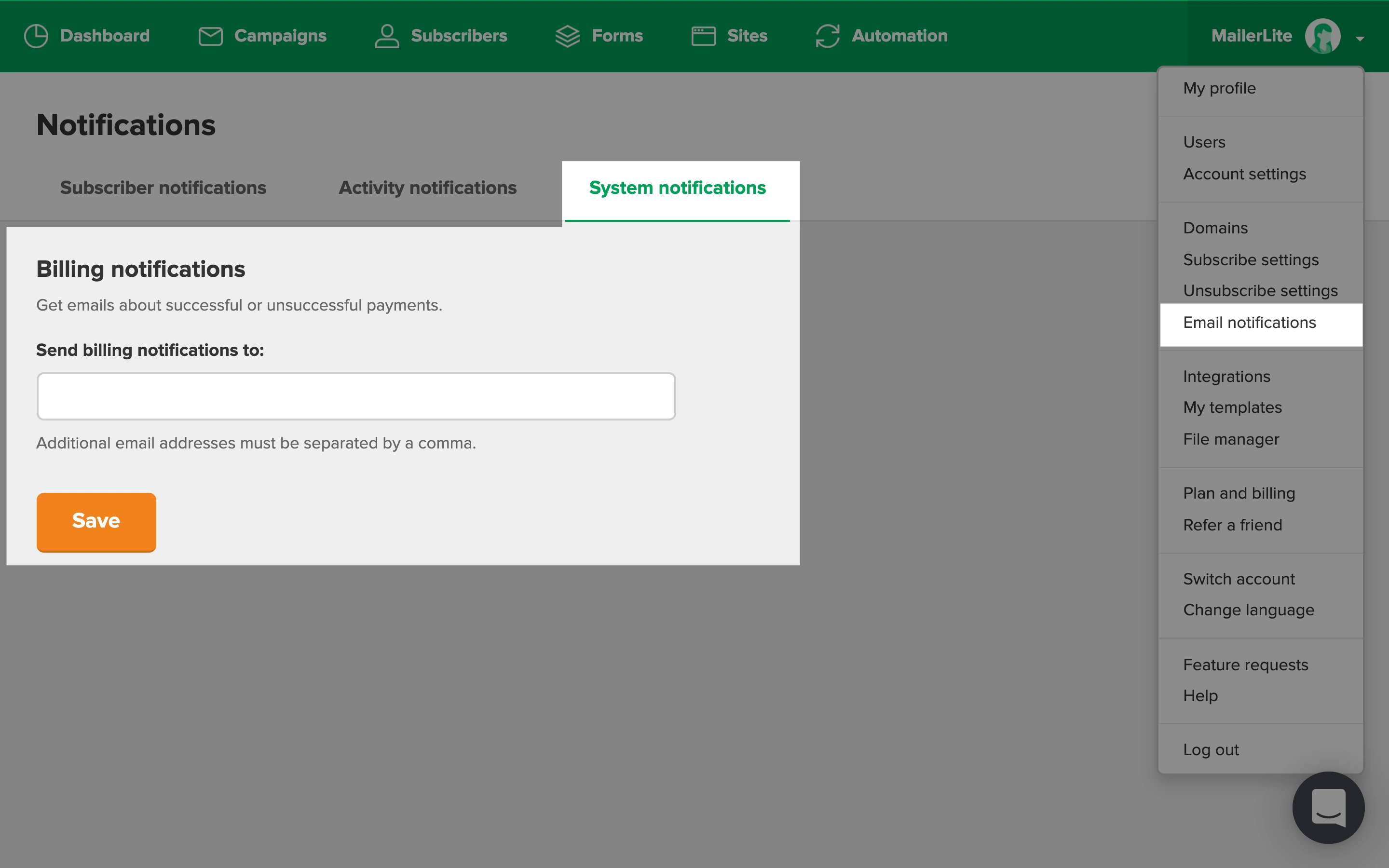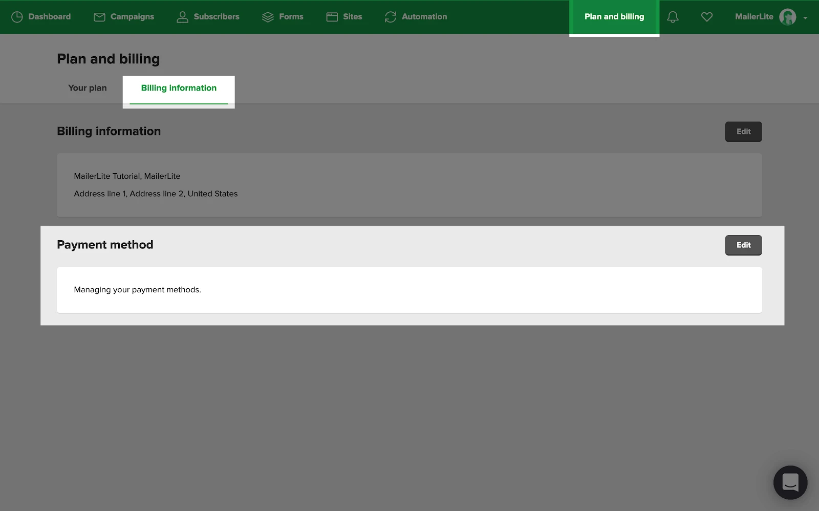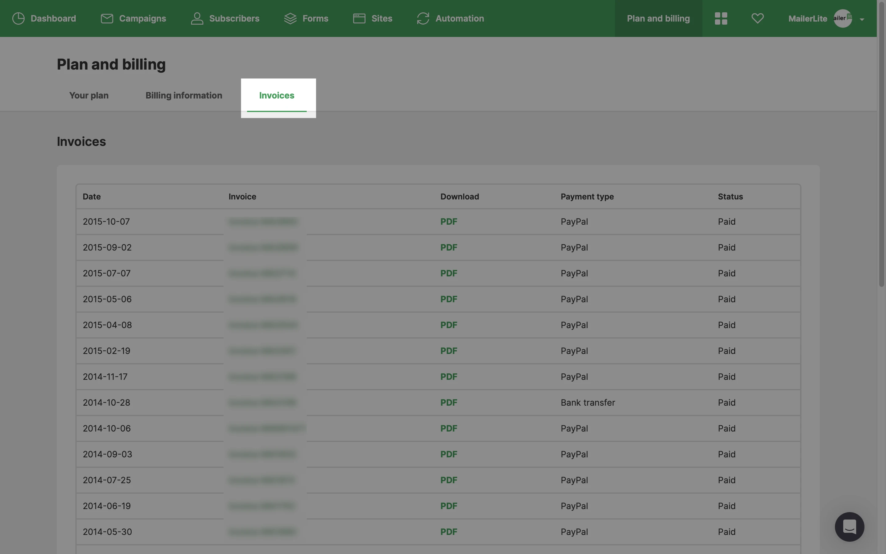 To locate your invoice statements from MailerLite: