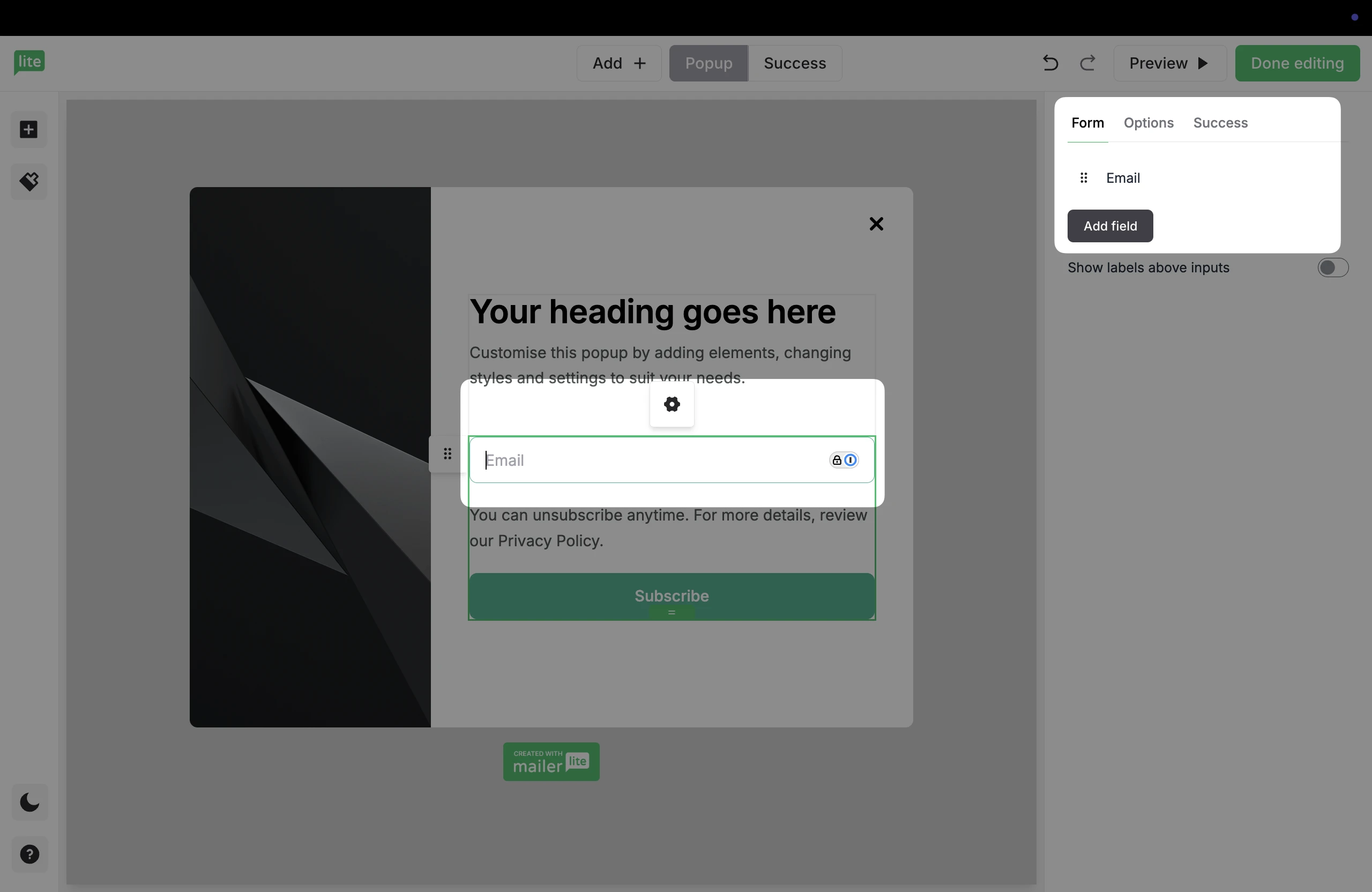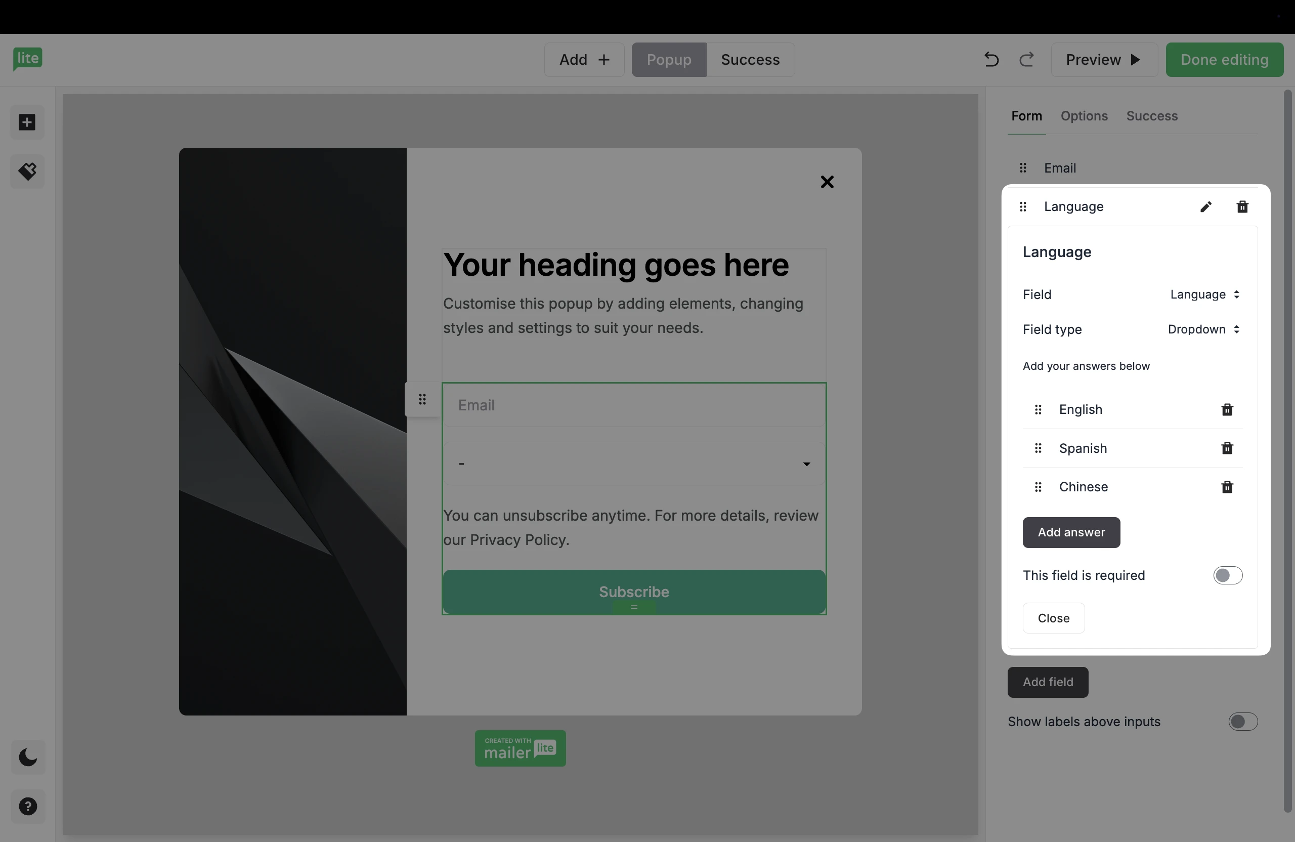 6. Once you have added all language options and designed your form, click Done editing to save your design and exit the editor.