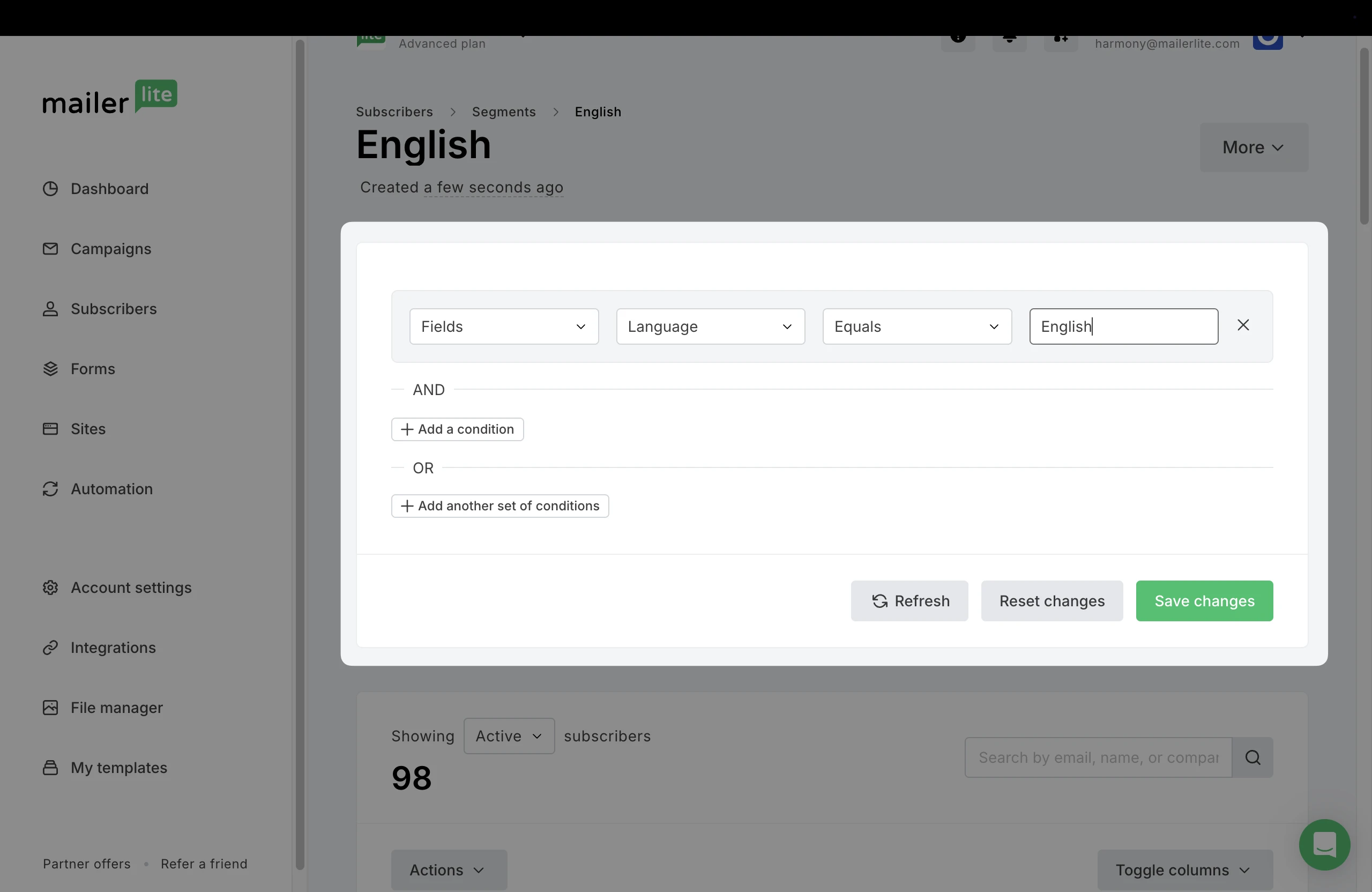 To send targeted campaigns, it’s best to segment your list. To segment by language: