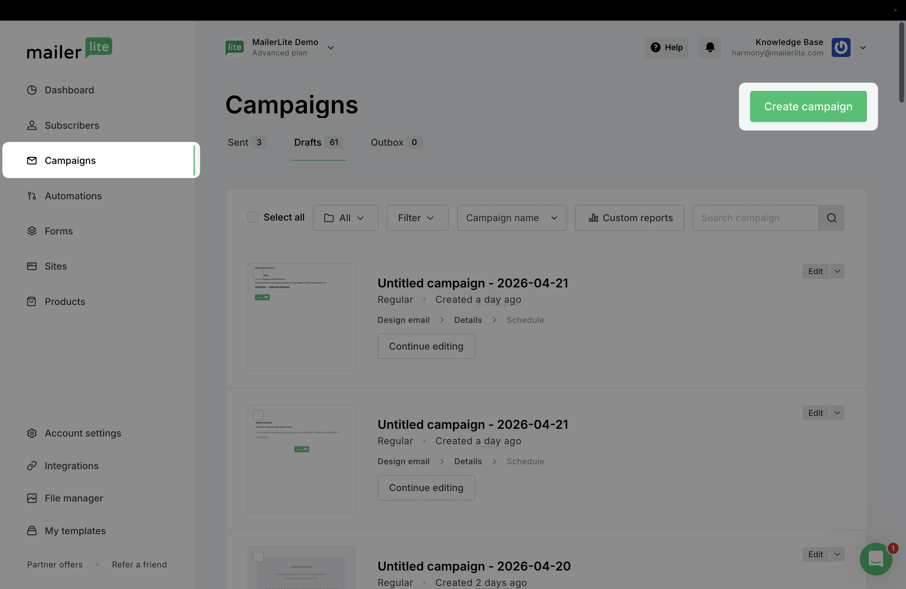 Click Create campaign.