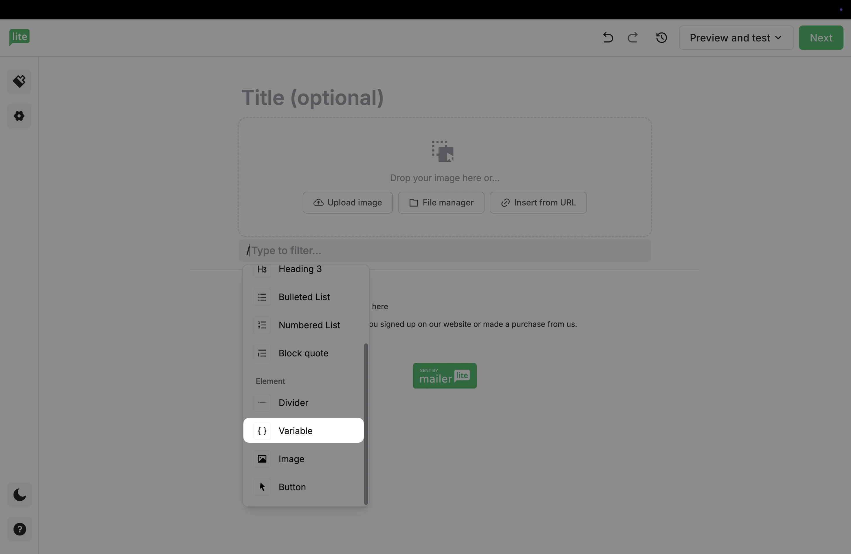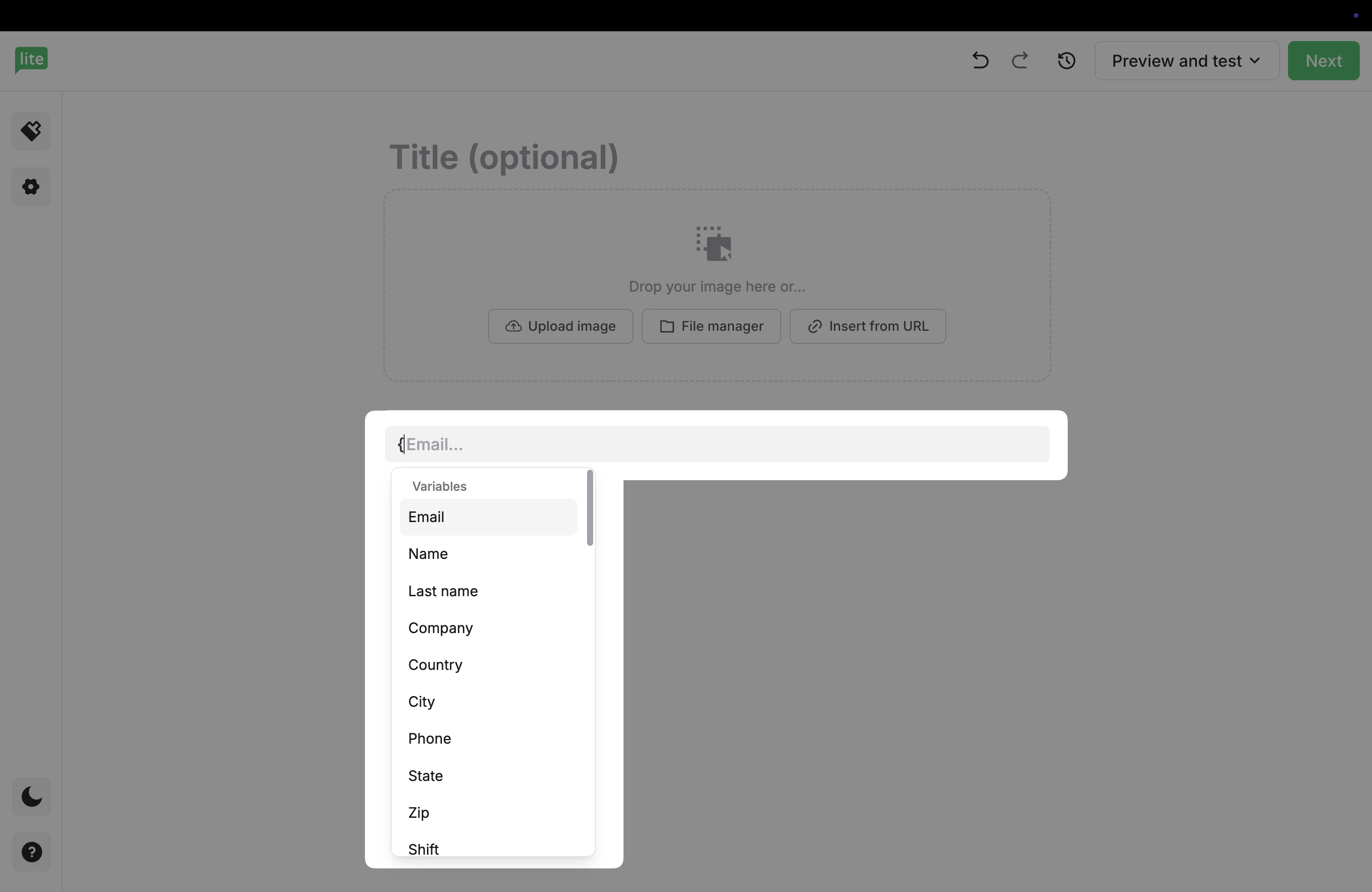 3. Select a variable from the dropdown menu to add to the email.
