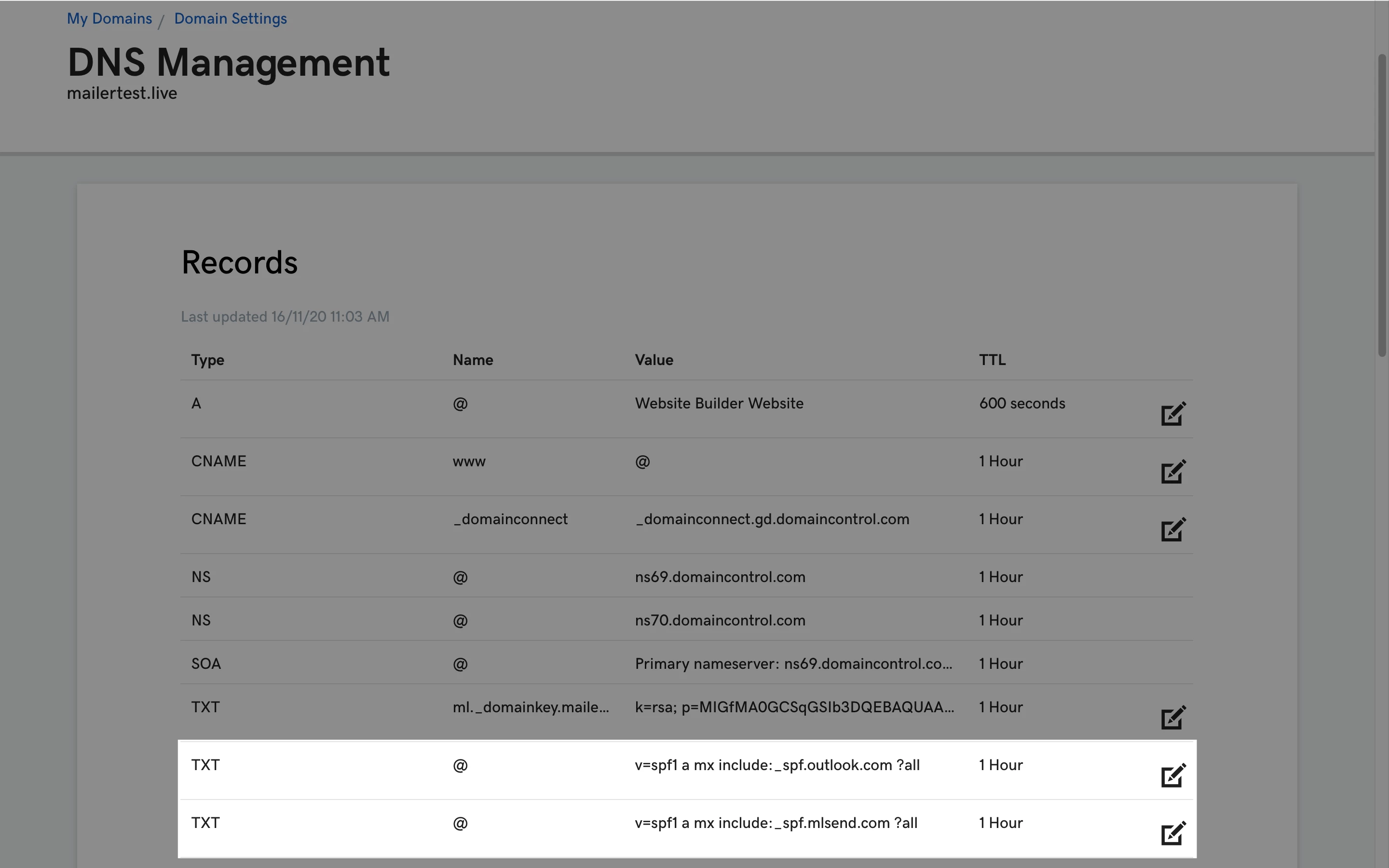 1. Identifying multiple records: In your DNS settings, if you find more than one TXT record for SPF, these records must be merged.