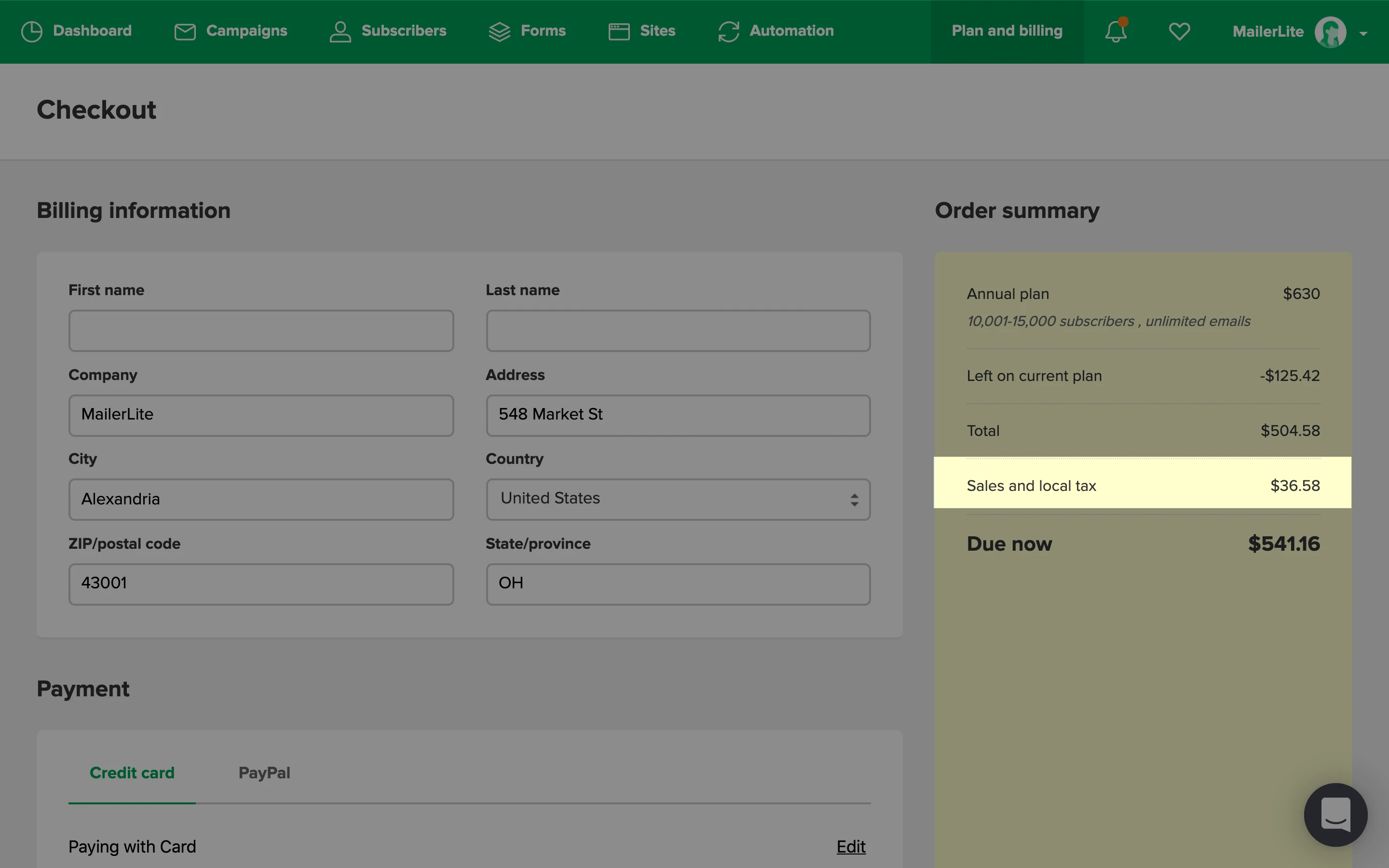 MailerLite is growing its client base across the United States. By law, we need to collect and remit sales taxes to comply with varying local and state laws across the country.