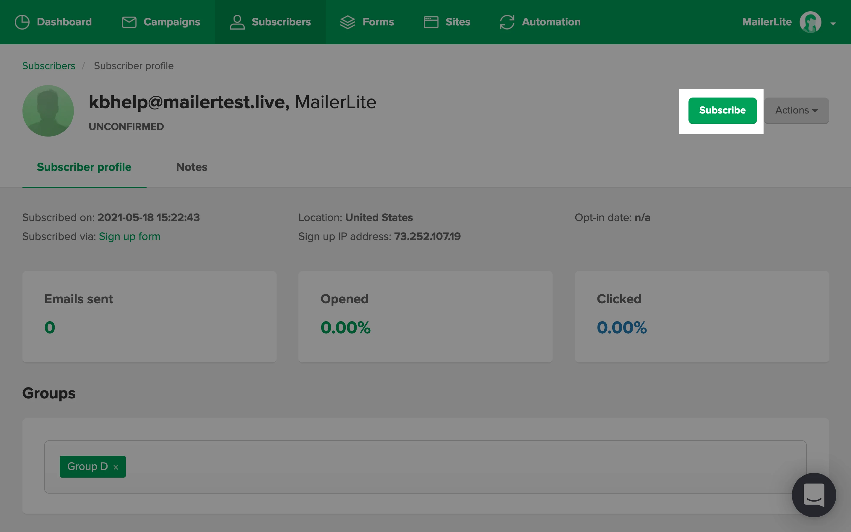 Search for the unconfirmed subscriber’s email on the Subscribers page.