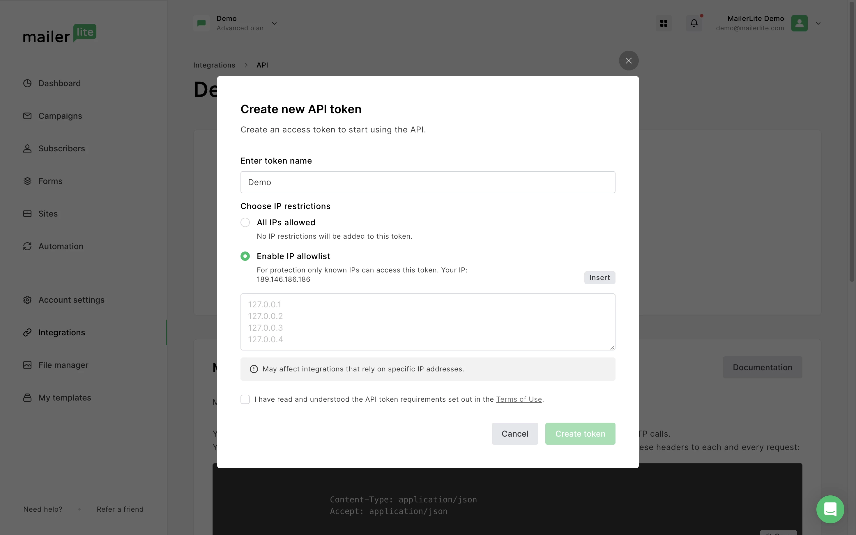 IP Allowlist: Here, you can create a list of trusted IP addresses that are permitted to use your API key. Only requests coming from these specified IP addresses will be accepted.