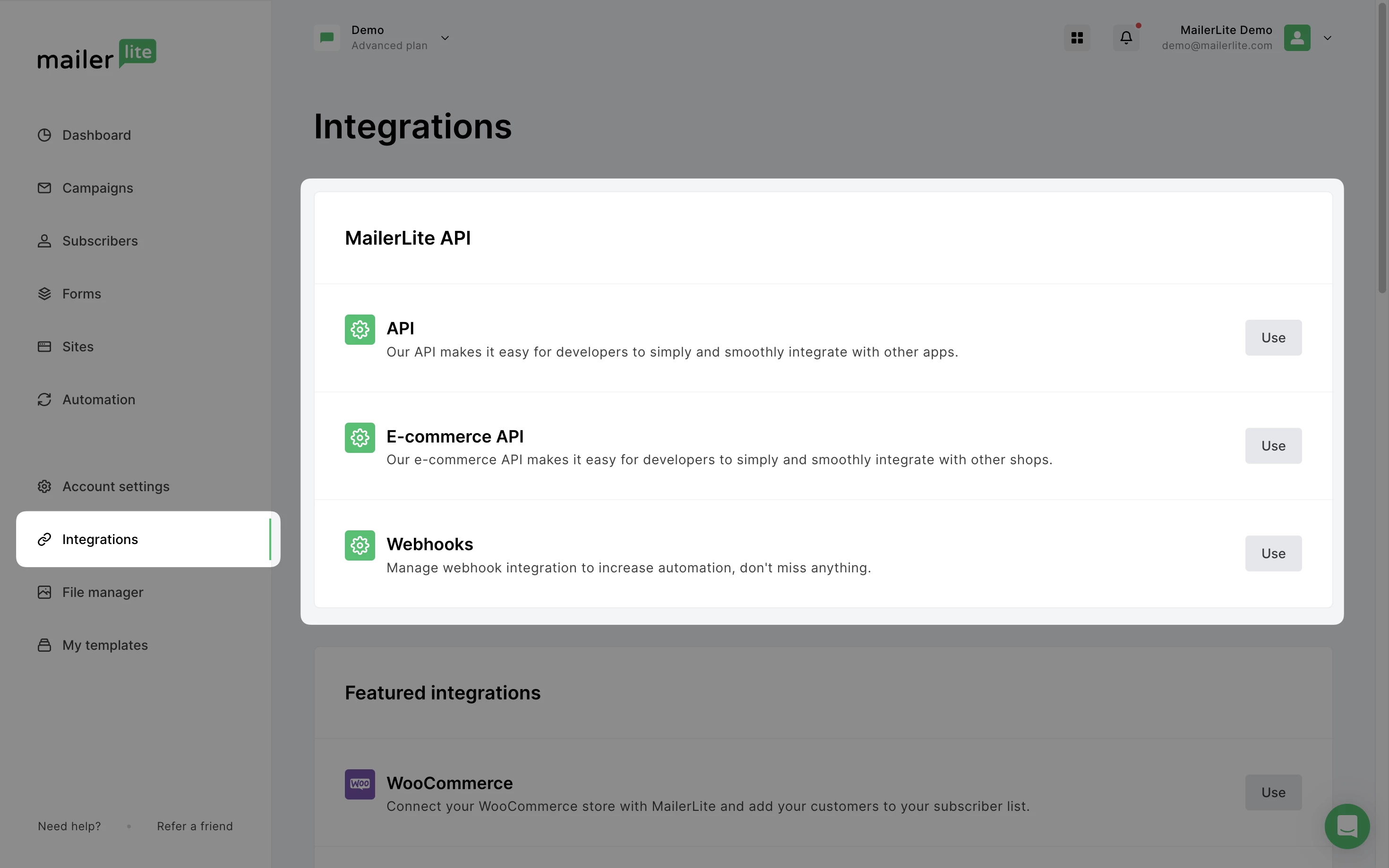 E-commerce API: Our E-commerce API allows you to connect an external shop to your MailerLite account.