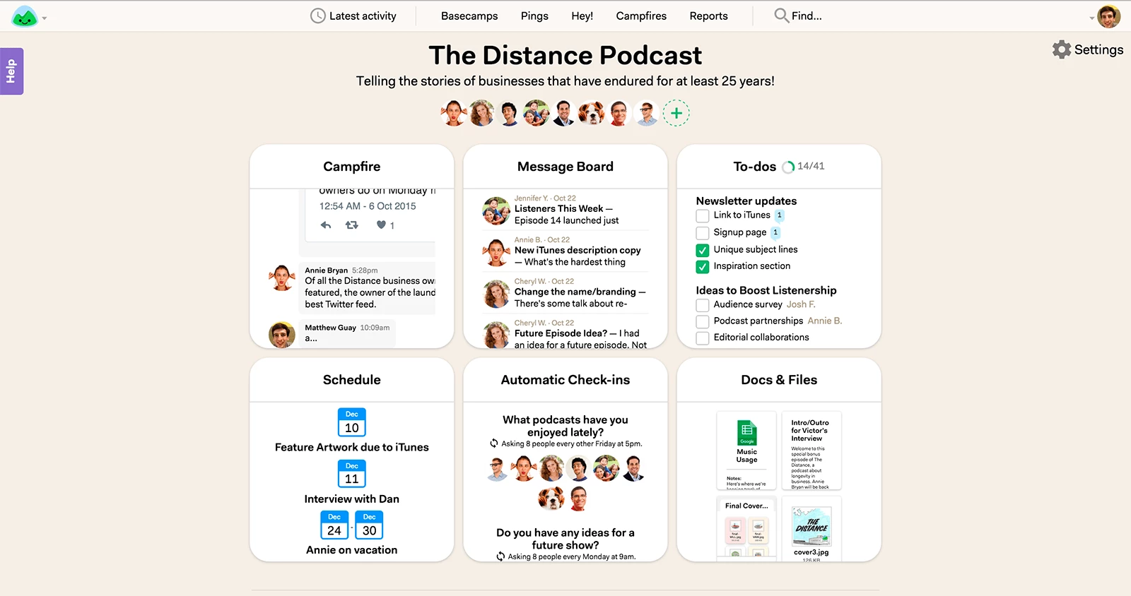 Basecamp 3 is a project management and team communication platform that has proved to optimize team productivity and better organization. Its features include message boards, schedules, file storage, real-time group chat, automatic check-ins, and more.