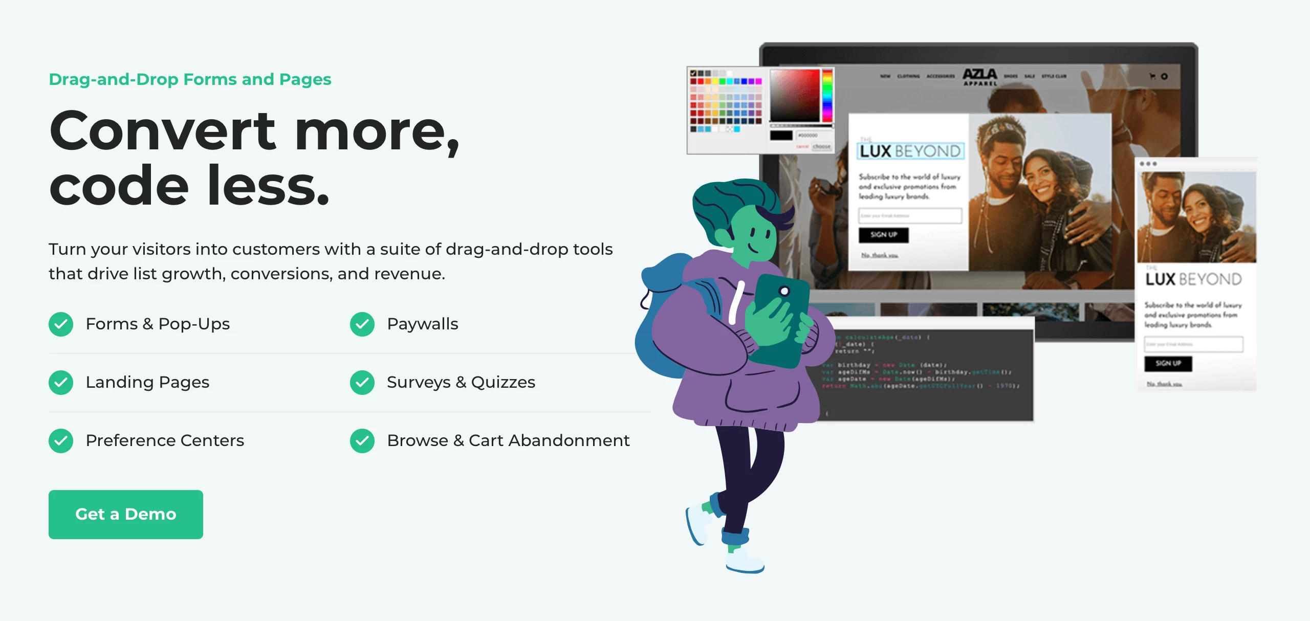 Digioh offers a drag and drop tool that allows you to create forms, pop-ups, landing pages, surveys, quizzes, preference centers, and cart abandonments. Increase your conversion rate with this powerful no-code tool.