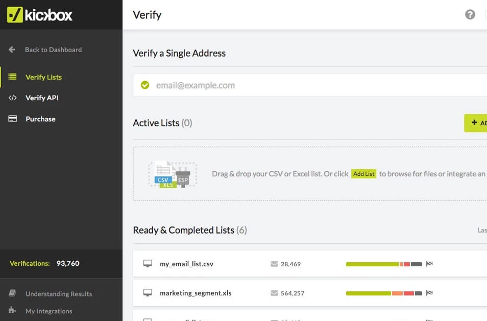 Kickbox is an email verification service that keeps your email list healthy by analyzing it for any invalid email addresses, spam traps, and those who could potentially hard bounce.