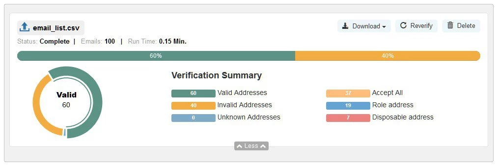 Validate your subscriber email list with QuickEmailVerification to improve your deliverability and increase your open rates. This online software examines each email address for validity, syntax errors, and riskiness.
