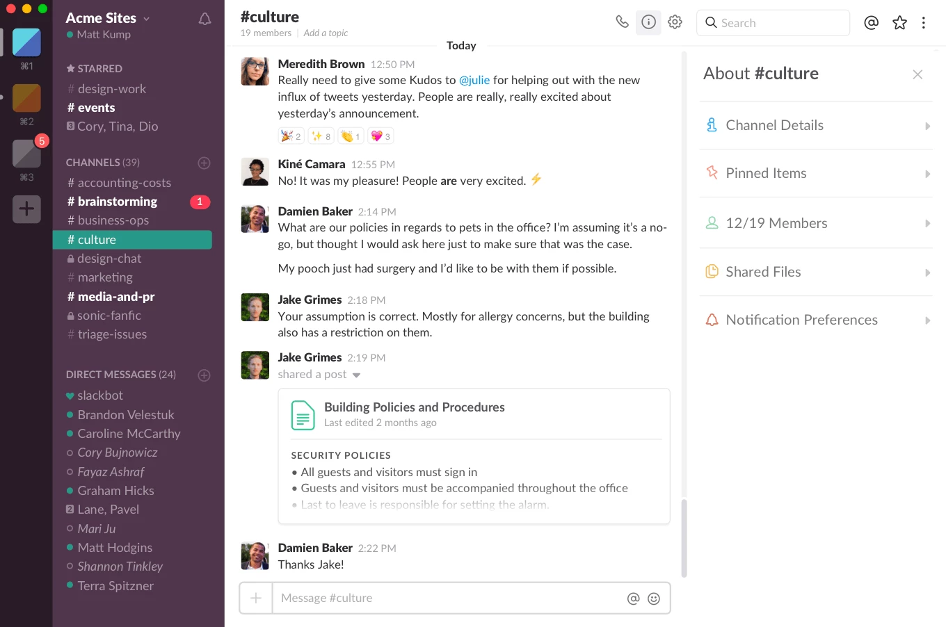 Slack is a communication platform that is mostly used by businesses to easily broadcast messages to everyone at the same time, as well as privately communicate with one another. It offers text, video, and audio communication.