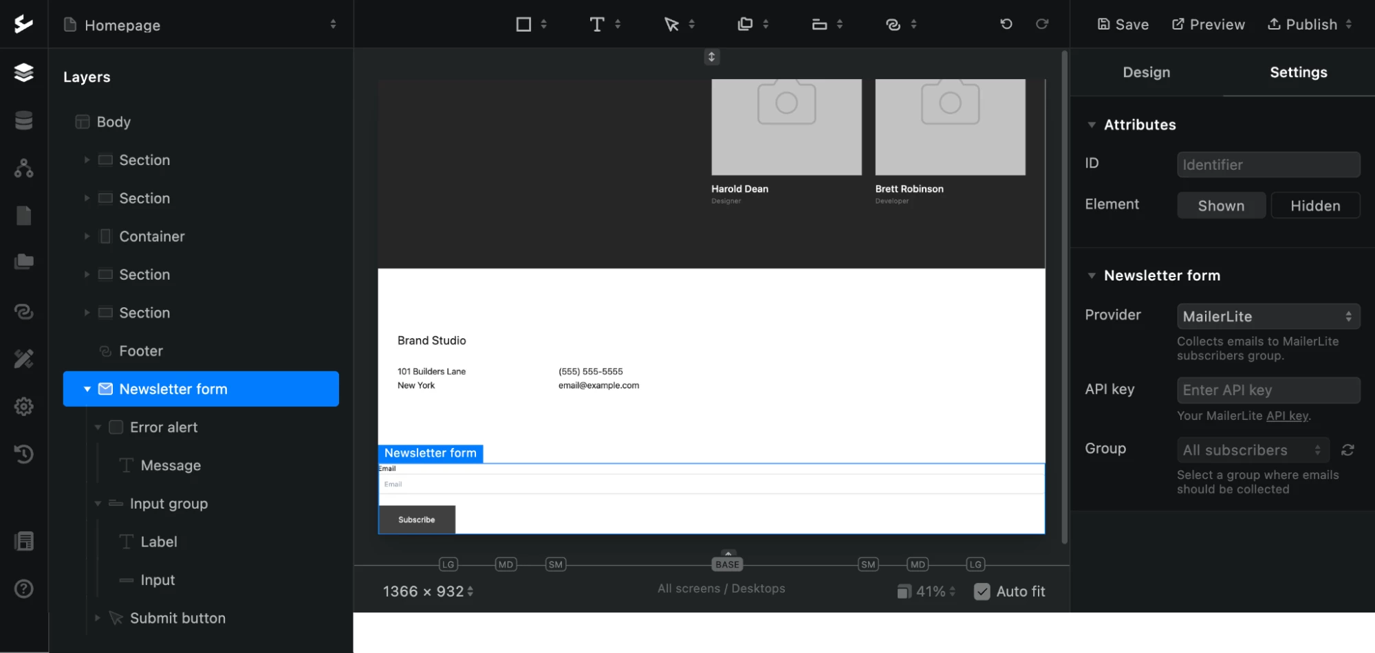 In no time at all, you can connect your Ycode project with your MailerLite account to start collecting subscribers from your website or app using newsletter signup forms.