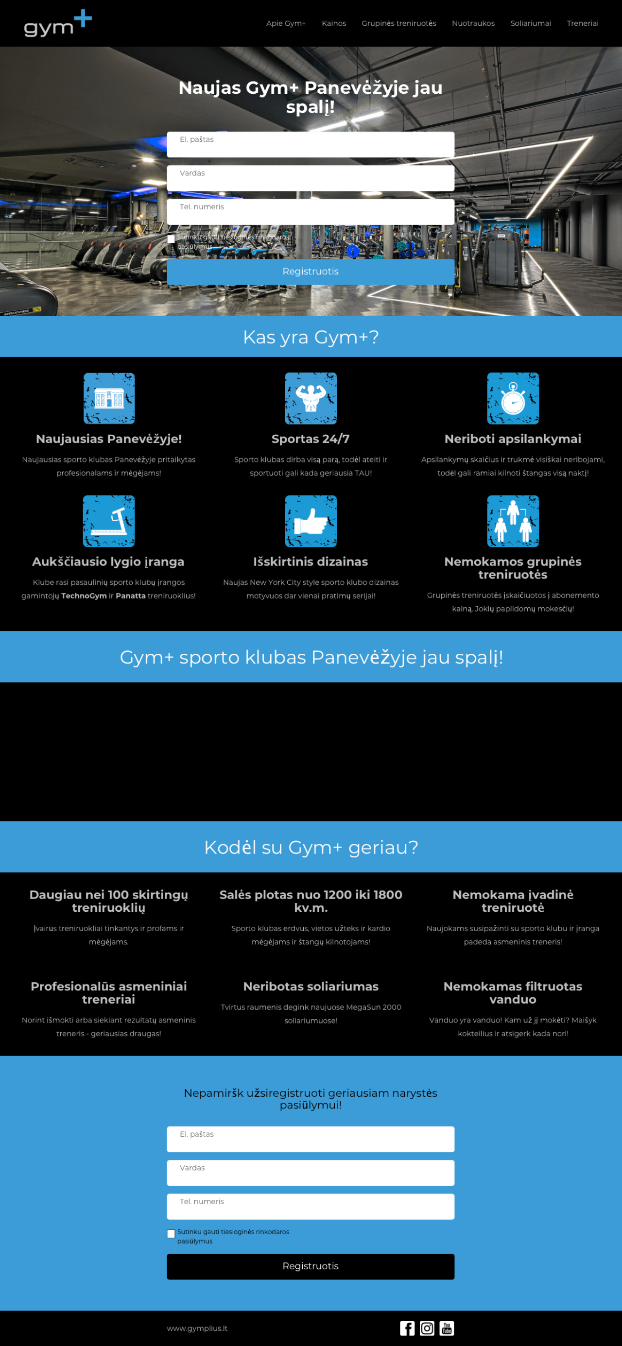 GymPlius landing page