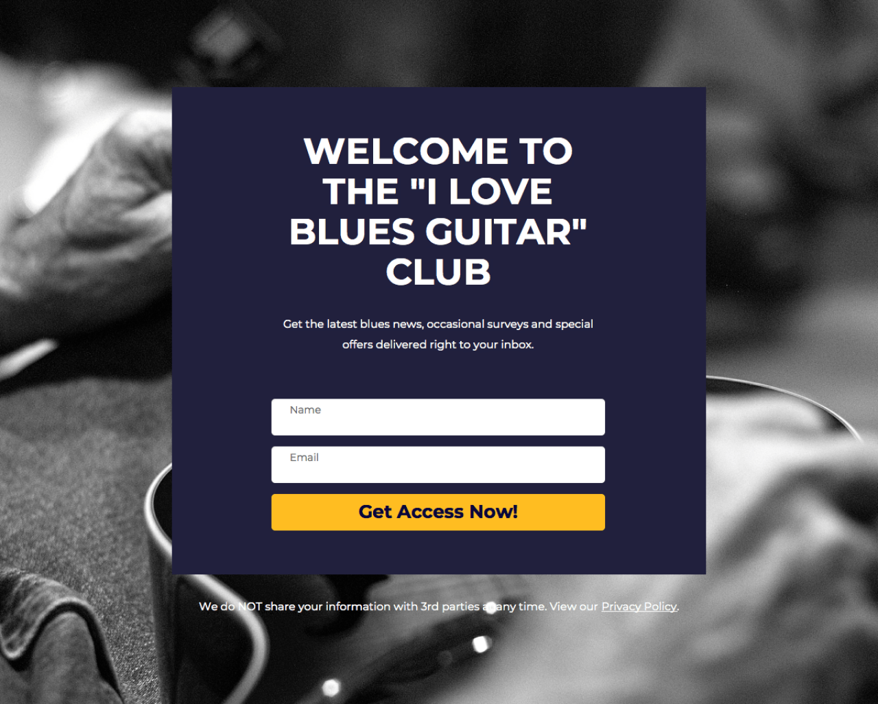 I Love Blues Guitar landing page